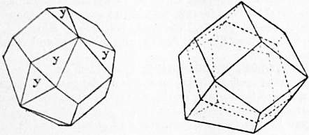 Ores and Minerals.—The principal source of bismuth is the native metal, which is occasionally met with as a mineral, usually in reticulated and arborescent shapes or as foliated and granular masses with a crystalline fracture. Although bismuth is readily obtained in fine crystals by artificial means, yet natural crystals are rare and usually indistinct; they belong to the rhombohedral system and a cube-like rhombohedron with interfacial angles of 92° 20′ is the predominating form. There is a perfect cleavage perpendicular to the trigonal axis of the crystals; the fact that only two (opposite) corners of the cube-like crystals can be truncated by cleavage at once distinguishes them from true cubes. When not tarnished, the mineral has a silver-white colour with a tinge of red, and the lustre is metallic. Hardness 2-2½; specific gravity 9.70-9.83. The slight variations in specific gravity are due to the presence of small amounts of arsenic, sulphur or tellurium, or to enclosed impurities.