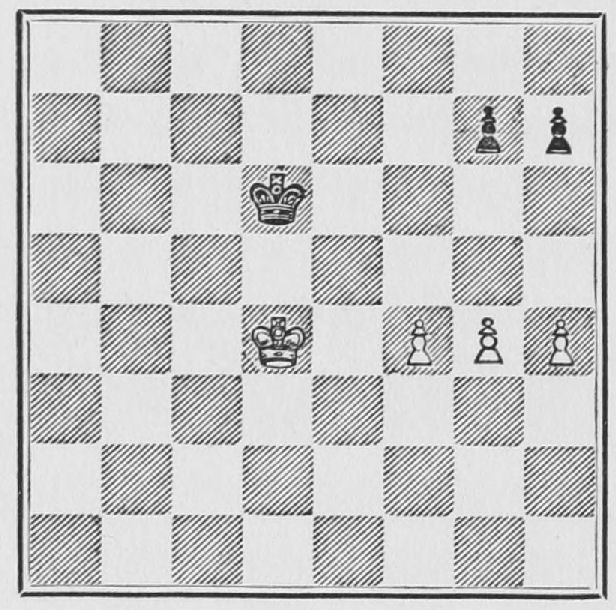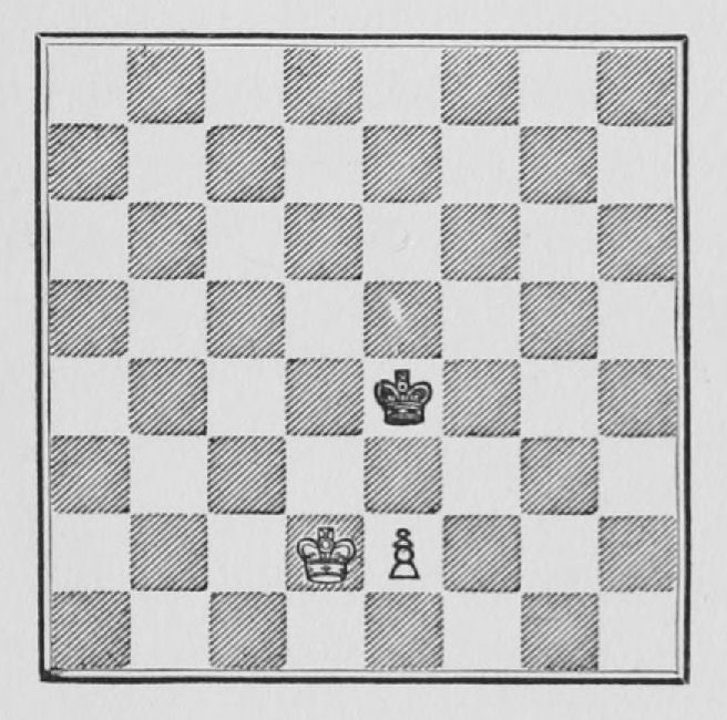 When, in this case, the King has been brought to the sixth rank, it is better to place it, not on the same file, but on the one next to it towards the centre.