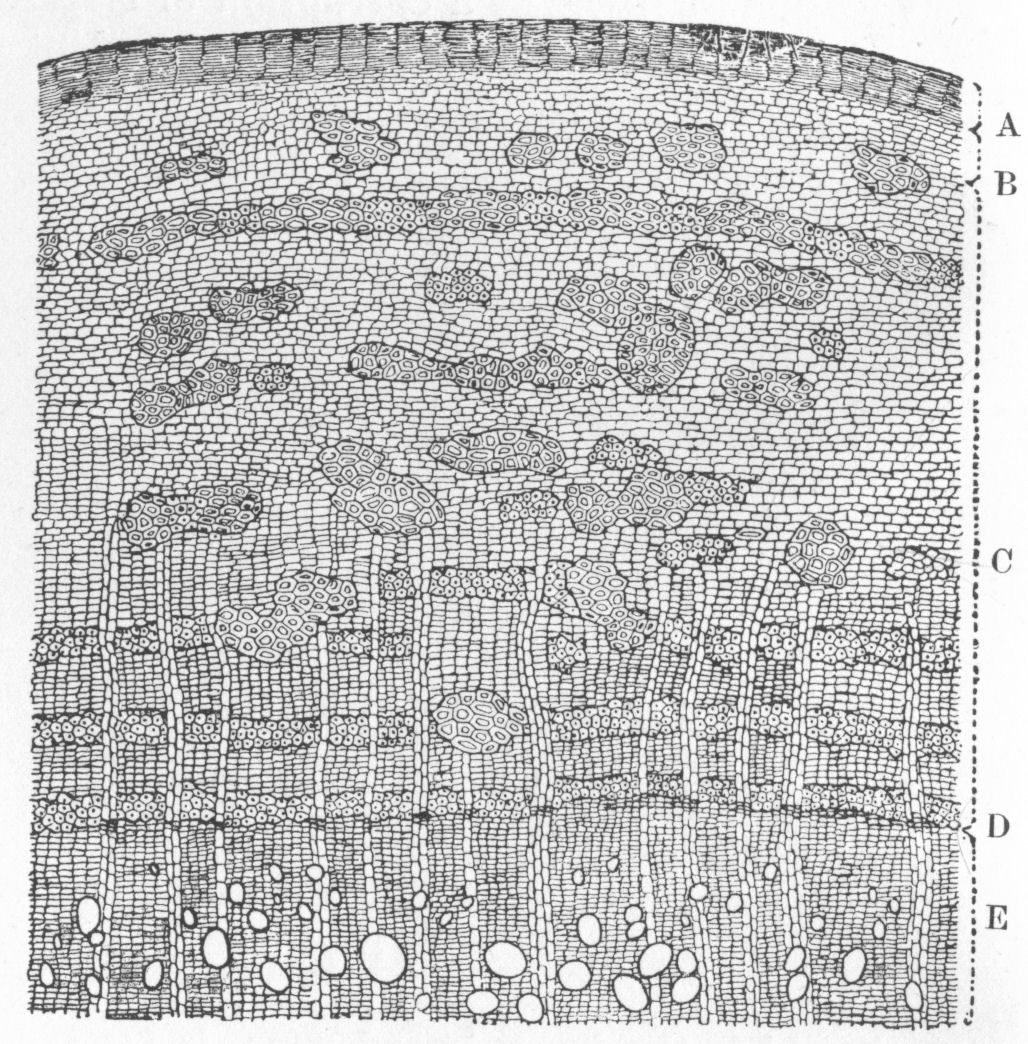 Beard-moss (Usnea barbāta), a lichen of grey colour, forming a shaggy coat on many forest trees.