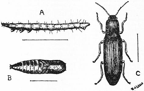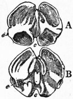 These two types are, in the main, correlated with two gradual differentiations in the minute structure of the thecal plates. Originally the calcareous substance of the plates (stereom) was pierced by irregular canals, more or less vertical, and containing strands of the soft tissue (stroma) that deposited the stereom, as well as spaces filled with fluid. In the former group (fig. 9) these canals became connected in pairs (diplopores) still perpendicular to the surface, and this structure, combined with that of the grooves, characterizes the order—Diploporita. In the latter group (fig. 10) the canals, that is to say, the stroma-strands, came to lie parallel to the surface and to cross the sutures between the plates, which were thus more flexibly and more strongly united: since the canals crossing each suture naturally occupy a rhombic area, the order is called Rhombifera. At first the grooves were three, one proceeding from each end of the mouth-slit, and the third in a direction opposed to the anus; with reference to the Pelmatozoan structure, the anal side may be termed posterior, and this groove anterior. Eventually each lateral groove forked, so that there were five grooves. These gradually impressed themselves on the theca and influenced the arrangement of the internal organs: it is fairly safe to assume that nerves, blood-vessels and branches from the water-sac stretched out along with these grooves, each system starting from a ring around the gullet. At last a quinqueradiate symmetry influenced the plates of the theca, partly through the development of a plate at the end of each groove (terminal), partly through plates at the aboral pole of the theca (basals and infrabasals) arising in response to mechanical pressure, but soon intimately connected with the cords of an aboral nervous system. Before the latter plates arose, the stem had developed by the elongation and constriction of the fixed end of the theca, the gradual regularization of the plates involved, and their coalescence into rings. The crinoid type was differentiated by the extension of the food-grooves and associated organs along radial outgrowths from the theca itself. These constituted the arms (brachia), and five definite radial plates of the theca were specialized for their support. These radials may be homologous with the terminals already mentioned, but this is neither necessary nor certain. In this development of brachial extensions of the theca the genital organs were involved, and their ripe products formed at the ends of the brachia or in the branches therefrom. The remains of the original genital gland within the theca became the “axial organ” surrounded by the “axial sinus” derived from the anterior coelom, and this again by structures derived from the right posterior coelom, which, as explained above, had been depressed to the aboral pole. These last structures formed a nervous sheath around the axial sinus with its blood-vessels, and became divided into five lobes correlated with the five basals (the “chambered organ”) and forming the aboral nerve-centre. Before these changes were complete the Holothurioidea must have diverged, by the assumption of a crawling existence. Thus in them the mouth and anus reverted to opposite poles, and only the torsion of the gut and coelom, and the radial extensions of the nervous, water-vascular and blood-vascular systems, testified to their Pelmatozoan ancestry. The ciliated grooves, no longer needed for the collection of food, closed over, and are still traceable as ciliated canals overlying the radial nerves. At the same time the thecal plates degenerated into spicules. The Edrioasteroidea followed a different line from that of the cystids above mentioned and their descendants. The theca became sessile, and in its later developments much flattened (fig. 11). Mouth, water-pore and anus remained as in Aristocystis, but the five ciliated grooves radiated from the mouth between the thecal plates rather than over them, and were, as usual, protected by covering-plates. The important feature was the extension of radial canals from the water-sac along these grooves, with branches passing between the flooring-plates of the grooves (fig. 12, A). The resemblance of the flooring-plates to the ambulacral ossicles of a starfish is so exact that one can explain it only by supposing similar relations of the water-canals and their branches (podia). On the thinly plated under surface of well-preserved specimens of Edrioaster are seen five interradial swellings (fig. 11, B). These are likely to have been produced by the ripe genital glands, which may have extruded their products directly through the membranous integument of the under side. No other way out for them is apparent, and it is clear that Edrioaster was not permanently and solidly fixed to the sea-floor.