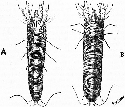 Sub-order i. Apoda.—No tube-feet or papillae, but tentacular ampullae more or less developed. Mostly burrowers. Families: Synaptidae (sub-famm. Synaptinae, Chirodotinae, Myriotrochinae), Molpadiidae.