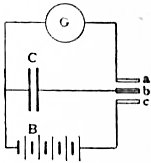In practice we can avoid the difficulty due to irregular distribution of electric force at the edges of the plate by the use of a guard plate as first suggested by Lord Kelvin.8 If a large plate has a circular hole cut in it, and this is nearly filled up by a Guard plates. circular plate lying in the same plane, and if we place another large plate parallel to the first, then the electric field between this second plate and the small circular plate is nearly uniform; and if S is the area of the small plate and d its distance from the opposed plate, its capacity may be calculated by the simple formula C = S / 4πd. The outer larger plate in which the hole is cut is called the “guard plate,” and must be kept at the same potential as the smaller inner or “trap-door plate.” The same arrangement can be supplied to a pair of coaxial cylinders. By placing metal plates on either side of a larger sheet of dielectric or insulator we can construct a condenser of relatively large capacity. The instrument known as a Leyden jar (q.v.) consists of a glass bottle coated within and without for three parts of the way up with tinfoil.