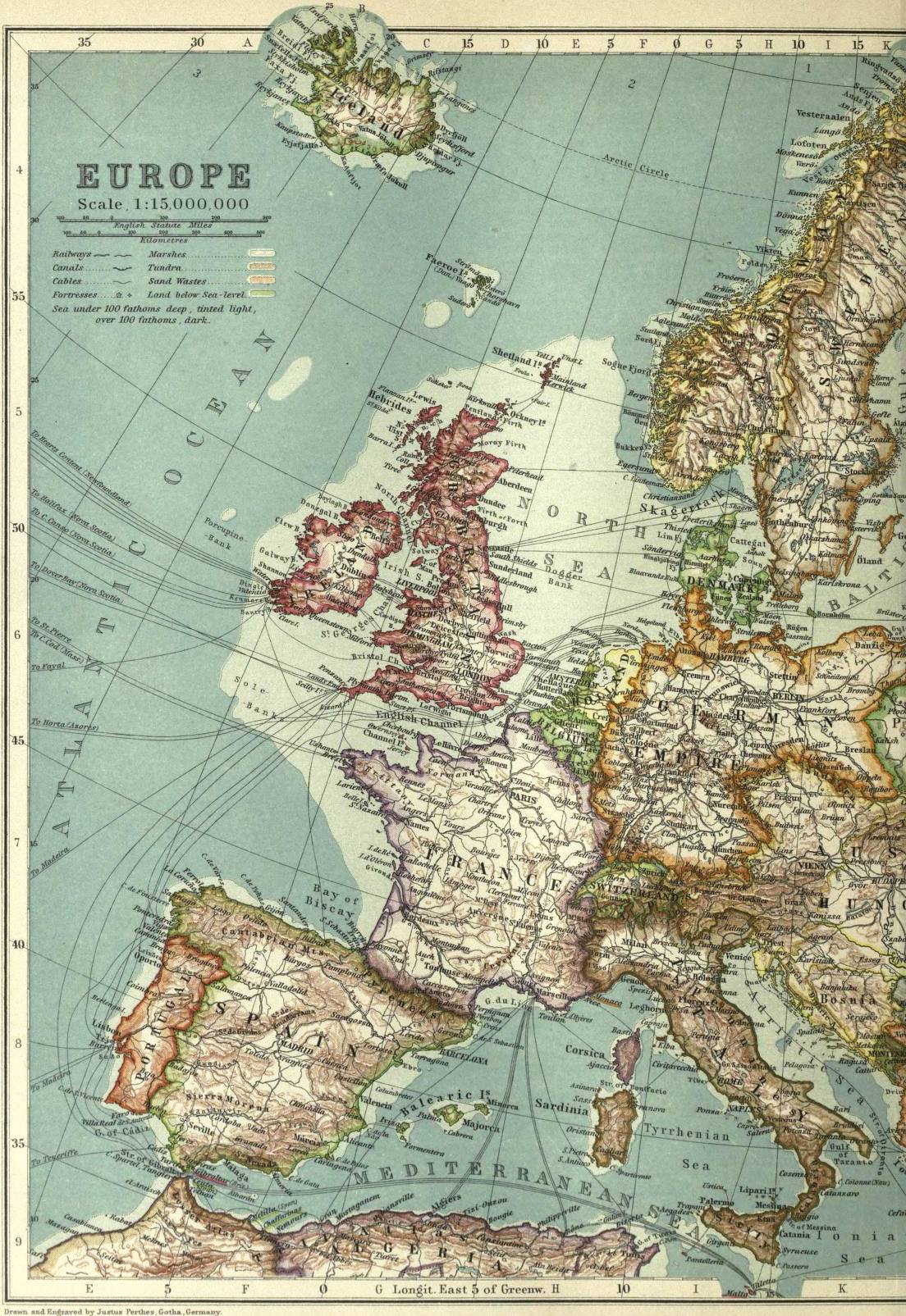 Of all animals man’s range alone coincides with that of the habitable globe, and the real difficulty of the “cradle-land” theory lay in explaining how the human race spread to every land. This problem has been met by geology, which proves that the earth’s surface has undergone great changes since man’s appearance, and that continents, long since submerged, once existed, making a complete land communication from Indo-Malaysia. The evidence for the Indo-African continent has been summed up by R.D. Oldham,1 and proofs no less cogent are available of the former existence of an Eurafrican continent, while the extension of Australia in the direction of New Guinea is more than probable. Thus the ancestor of man was free to move in all directions over the eastern hemisphere. The western hemisphere was more than probably connected with Europe and Asia, in Tertiary times, by a continent, the existence of which is evidenced by a submarine bank stretching from Scotland through the Faeroes and Iceland to Greenland, and on the other side by continuous land at what is now the Behring Straits.