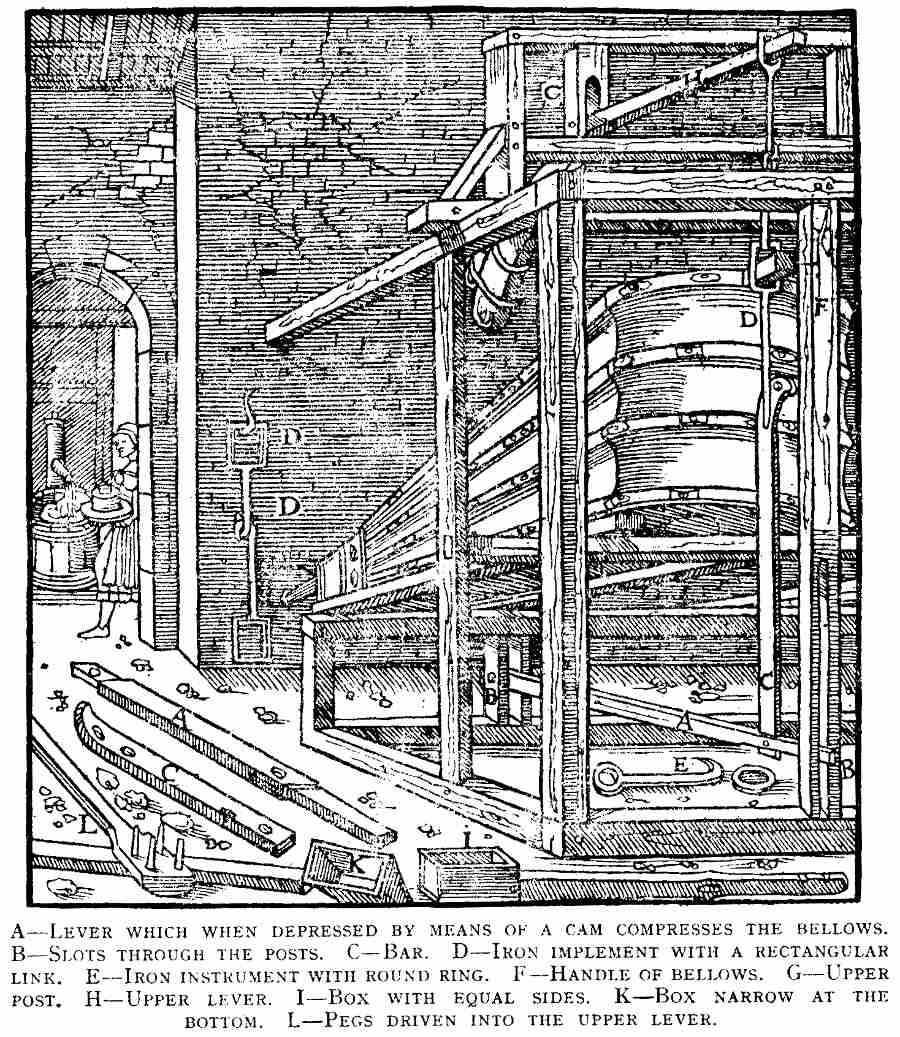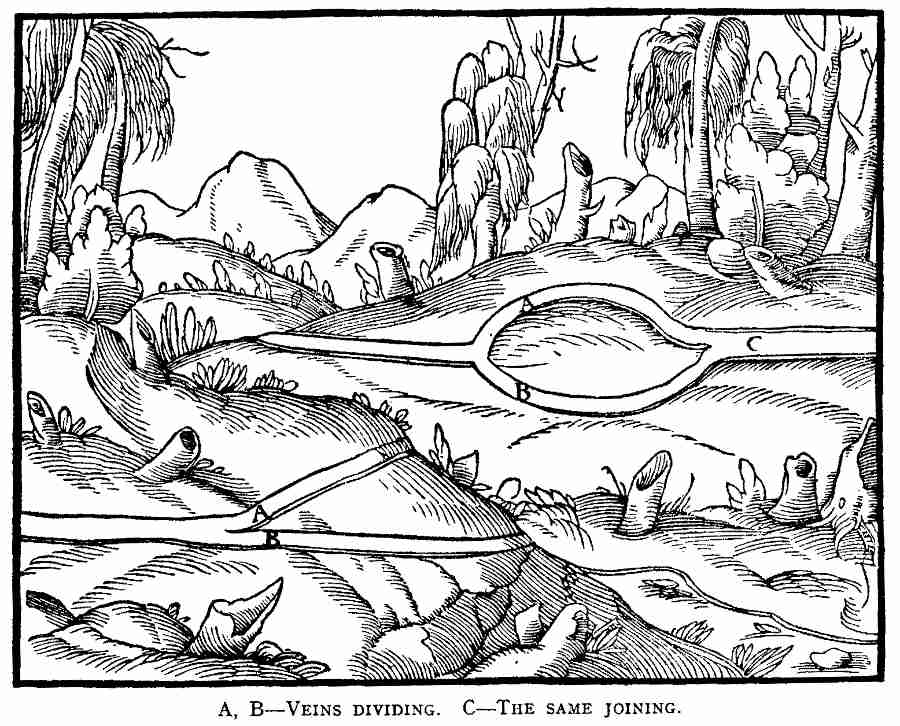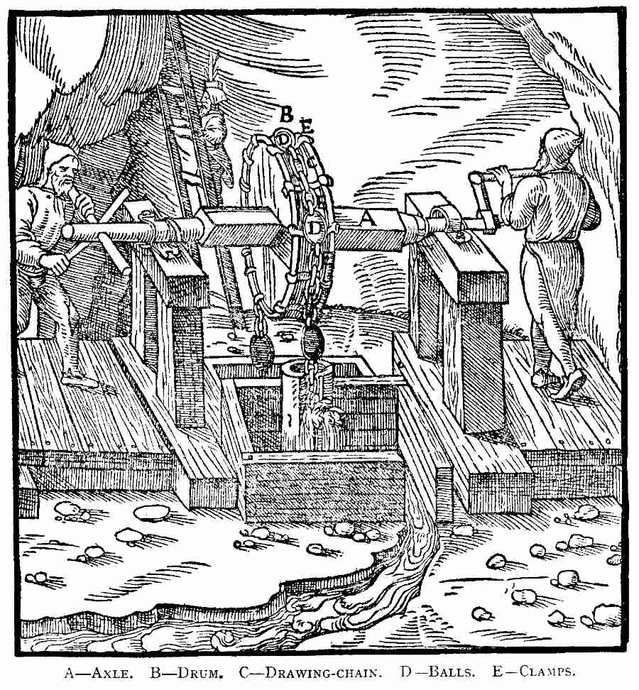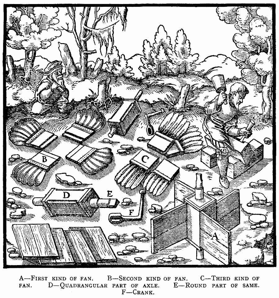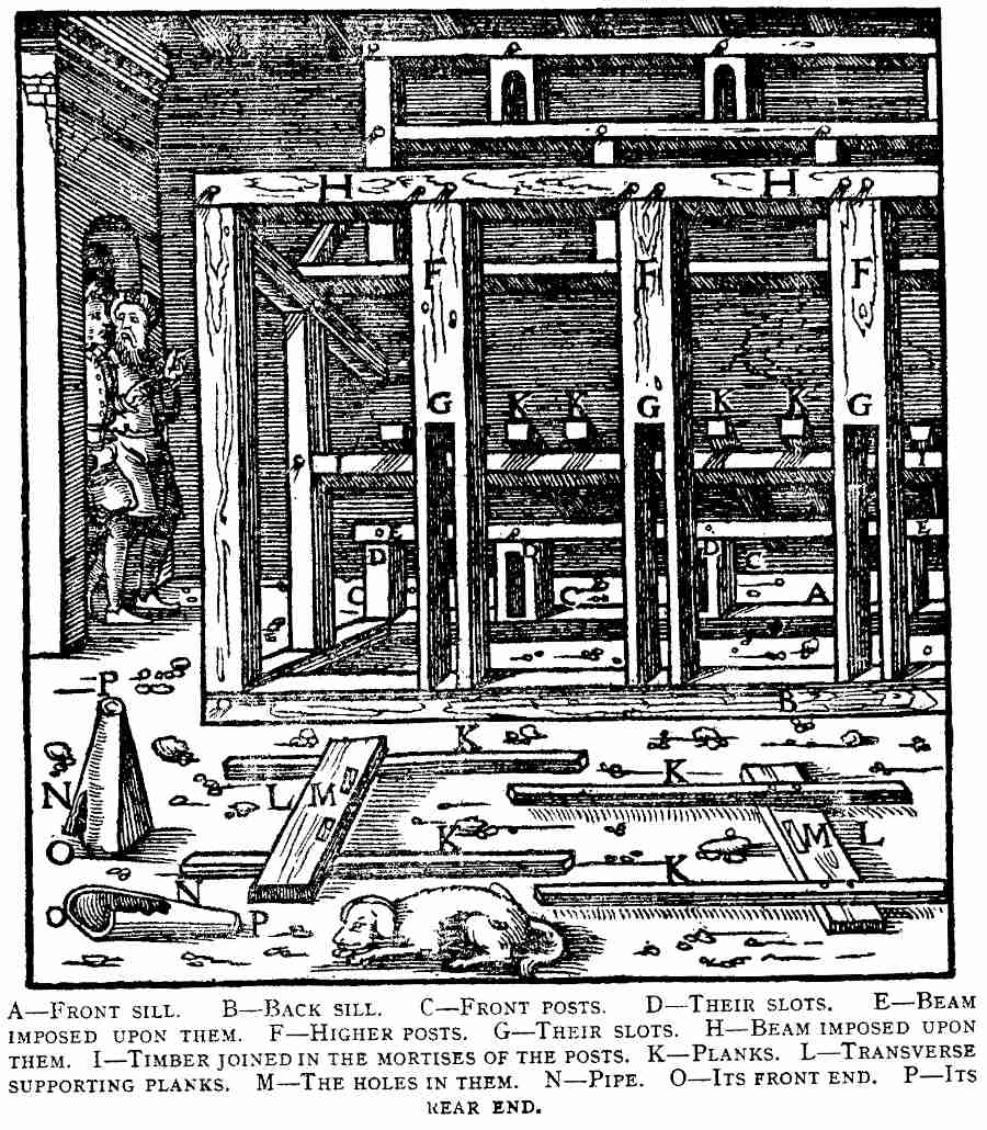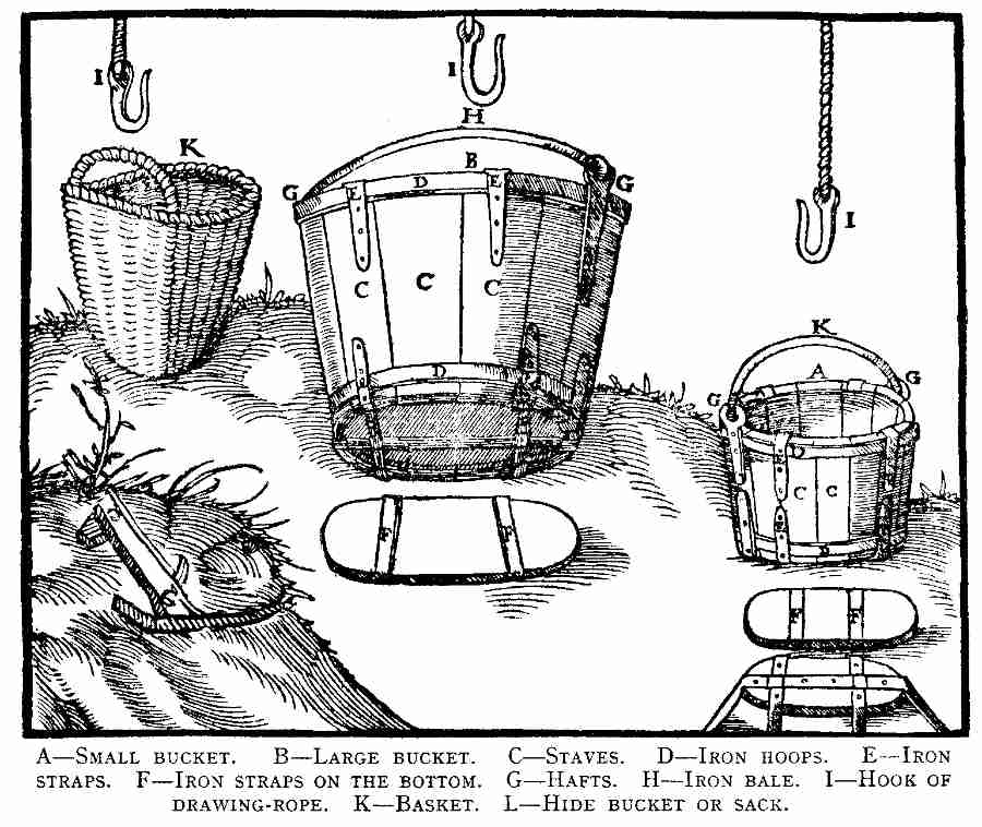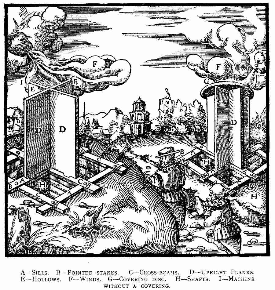 In addition to these, Leupold,[21] Schmid,[22] and others mention an octavo edition, without illustrations, Schweinfurt, 1607. We have not been able to find a copy of this edition, and are not certain of its existence. The same catalogues also mention an octavo edition of De Re Metallica, Wittenberg, 1612 or 1614, with notes by Joanne Sigfrido; but we believe this to be a confusion with Agricola's subsidiary works, which were published at this time and place, with such notes.