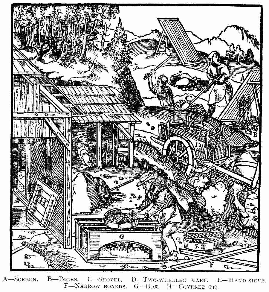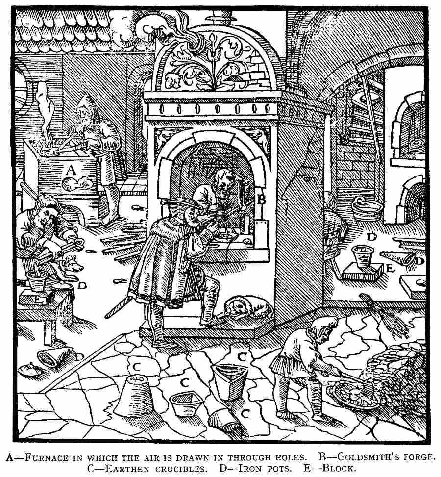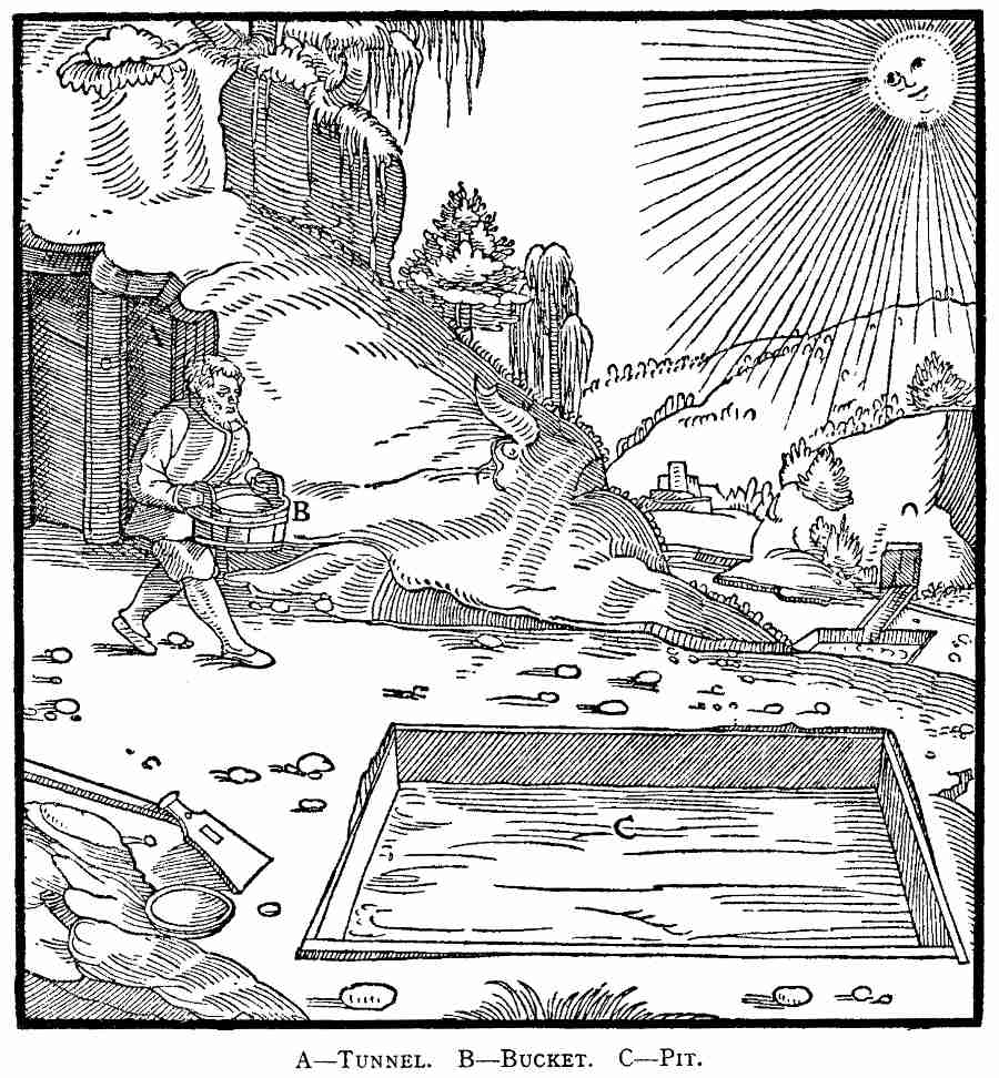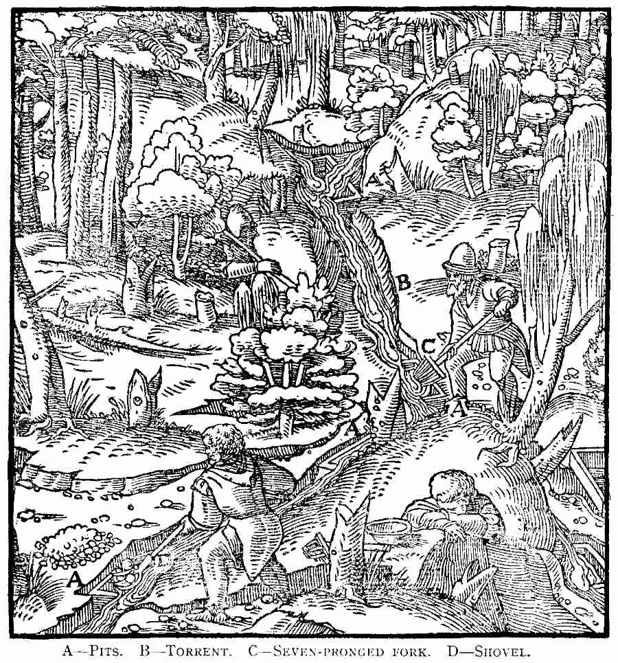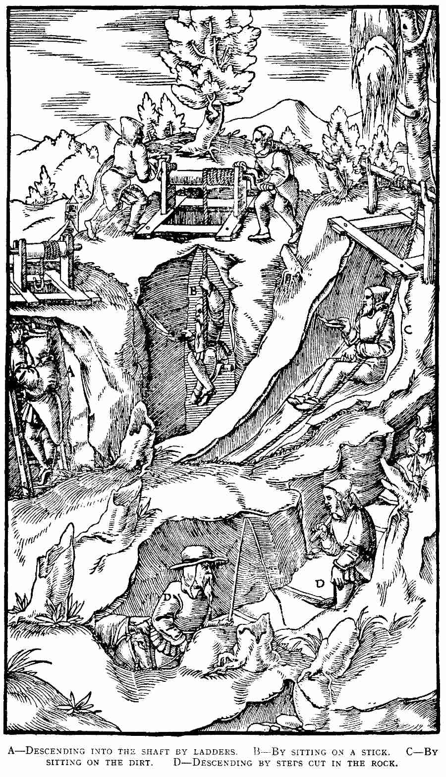 Seeing that there have been so few who have written on the subject of the metals, it appears to me all the more wonderful that so many alchemists have arisen who would compound metals artificially, and who would change one into another. Hermolaus Barbarus,[11] a man of high rank and station, and distinguished in all kinds of learning, has mentioned the names of many in his writings; and I will proffer more, but only famous ones, for I will limit myself to a few. Thus Osthanes has written on χυμευτικά and there are Hermes; Chanes; Zosimus, the Alexandrian, to his sister Theosebia; Olympiodorus, also an Alexandrian; Agathodæmon; Democritus, not the one of Abdera, but some other whom I know not; Orus Chrysorichites, Pebichius, Comerius, Joannes, Apulejus, Petasius, Pelagius, Africanus, Theophilus, Synesius, Stephanus to Heracleus Cæsar, Heliodorus to Theodosius, Geber, Callides Rachaidibus, Veradianus, Rodianus, Canides, Merlin, Raymond Lully, Arnold de Villa Nova, and Augustinus Pantheus of Venice; and three women, Cleopatra, the maiden Taphnutia, and Maria the Jewess.[12] All these alchemists employ obscure language, and Johanes Aurelius Augurellus of Rimini, alone has used the language of poetry. There are many other books on [Pg xxviii]this subject, but all are difficult to follow, because the writers upon these things use strange names, which do not properly belong to the metals, and because some of them employ now one name and now another, invented by themselves, though the thing itself changes not. These masters teach their disciples that the base metals, when smelted, are broken up; also they teach the methods by which they reduce them to the primary parts and remove whatever is superfluous in them, and by supplying what is wanted make out of them the precious metals—that is, gold and silver,—all of which they carry out in a crucible. Whether they can do these things or not I cannot decide; but, seeing that so many writers assure us with all earnestness that they have reached that goal for which they aimed, it would seem that faith might be placed in them; yet also seeing that we do not read of any of them ever having become rich by this art, nor do we now see them growing rich, although so many nations everywhere have produced, and are producing, alchemists, and all of them are straining every nerve night and day to the end that they may heap a great quantity of gold and silver, I should say the matter is dubious. But although it may be due to the carelessness of the writers that they have not transmitted to us the names of the masters who acquired great wealth through this occupation, certainly it is clear that their disciples either do not understand their precepts or, if they do understand them, do not follow them; for if they do comprehend them, seeing that these disciples have been and are so numerous, they would have by to-day filled [Pg xxix]whole towns with gold and silver. Even their books proclaim their vanity, for they inscribe in them the names of Plato and Aristotle and other philosophers, in order that such high-sounding inscriptions may impose upon simple people and pass for learning. There is another class of alchemists who do not change the substance of base metals, but colour them to represent gold or silver, so that they appear to be that which they are not, and when this appearance is taken from them by the fire, as if it were a garment foreign to them, they return to their own character. These alchemists, since they deceive people, are not only held in the greatest odium, but their frauds are a capital offence. No less a fraud, warranting capital punishment, is committed by a third sort of alchemists; these throw into a crucible a small piece of gold or silver hidden in a coal, and after mixing therewith fluxes which have the power of extracting it, pretend to be making gold from orpiment, or silver from tin and like substances. But concerning the art of alchemy, if it be an art, I will speak further elsewhere. I will now return to the art of mining.