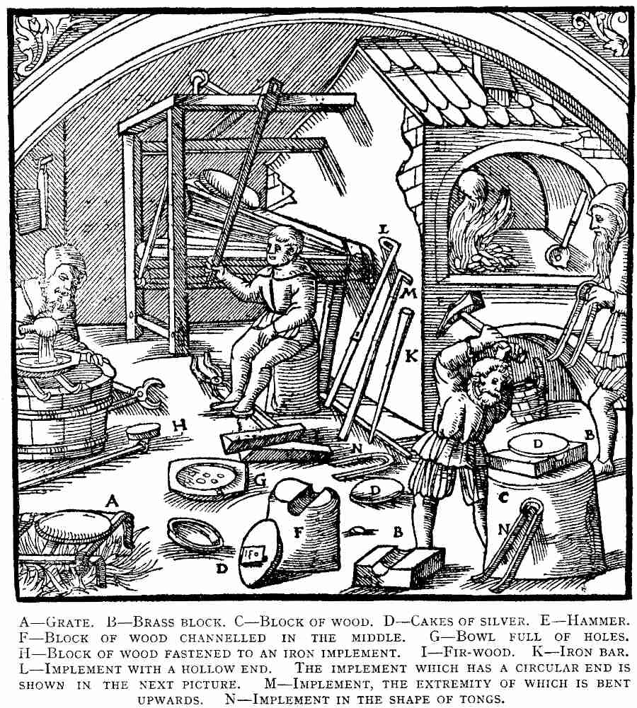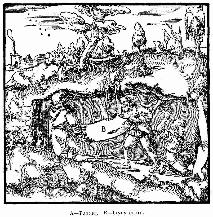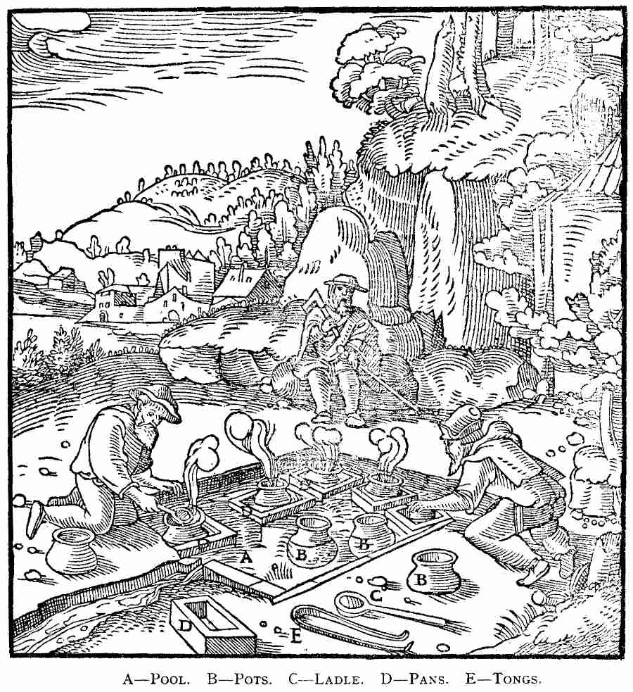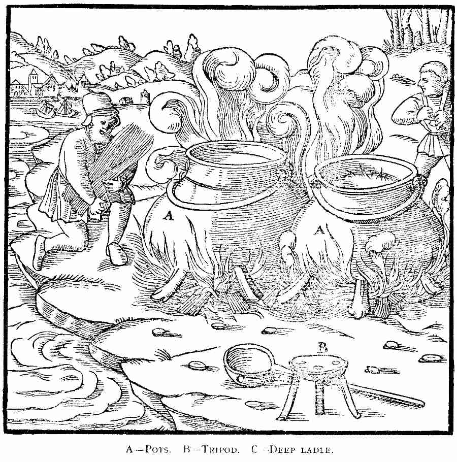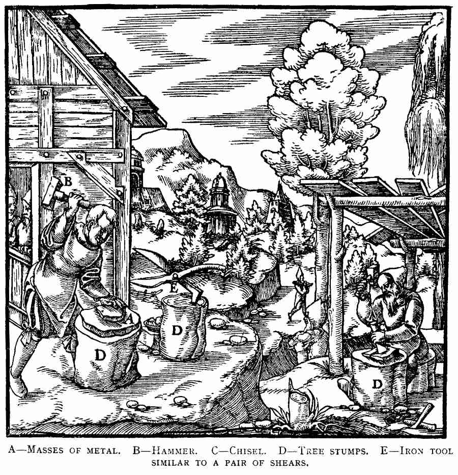 Seeing that there have been so few who have written on the subject of the metals, it appears to me all the more wonderful that so many alchemists have arisen who would compound metals artificially, and who would change one into another. Hermolaus Barbarus,[11] a man of high rank and station, and distinguished in all kinds of learning, has mentioned the names of many in his writings; and I will proffer more, but only famous ones, for I will limit myself to a few. Thus Osthanes has written on χυμευτικά and there are Hermes; Chanes; Zosimus, the Alexandrian, to his sister Theosebia; Olympiodorus, also an Alexandrian; Agathodæmon; Democritus, not the one of Abdera, but some other whom I know not; Orus Chrysorichites, Pebichius, Comerius, Joannes, Apulejus, Petasius, Pelagius, Africanus, Theophilus, Synesius, Stephanus to Heracleus Cæsar, Heliodorus to Theodosius, Geber, Callides Rachaidibus, Veradianus, Rodianus, Canides, Merlin, Raymond Lully, Arnold de Villa Nova, and Augustinus Pantheus of Venice; and three women, Cleopatra, the maiden Taphnutia, and Maria the Jewess.[12] All these alchemists employ obscure language, and Johanes Aurelius Augurellus of Rimini, alone has used the language of poetry. There are many other books on [Pg xxviii]this subject, but all are difficult to follow, because the writers upon these things use strange names, which do not properly belong to the metals, and because some of them employ now one name and now another, invented by themselves, though the thing itself changes not. These masters teach their disciples that the base metals, when smelted, are broken up; also they teach the methods by which they reduce them to the primary parts and remove whatever is superfluous in them, and by supplying what is wanted make out of them the precious metals—that is, gold and silver,—all of which they carry out in a crucible. Whether they can do these things or not I cannot decide; but, seeing that so many writers assure us with all earnestness that they have reached that goal for which they aimed, it would seem that faith might be placed in them; yet also seeing that we do not read of any of them ever having become rich by this art, nor do we now see them growing rich, although so many nations everywhere have produced, and are producing, alchemists, and all of them are straining every nerve night and day to the end that they may heap a great quantity of gold and silver, I should say the matter is dubious. But although it may be due to the carelessness of the writers that they have not transmitted to us the names of the masters who acquired great wealth through this occupation, certainly it is clear that their disciples either do not understand their precepts or, if they do understand them, do not follow them; for if they do comprehend them, seeing that these disciples have been and are so numerous, they would have by to-day filled [Pg xxix]whole towns with gold and silver. Even their books proclaim their vanity, for they inscribe in them the names of Plato and Aristotle and other philosophers, in order that such high-sounding inscriptions may impose upon simple people and pass for learning. There is another class of alchemists who do not change the substance of base metals, but colour them to represent gold or silver, so that they appear to be that which they are not, and when this appearance is taken from them by the fire, as if it were a garment foreign to them, they return to their own character. These alchemists, since they deceive people, are not only held in the greatest odium, but their frauds are a capital offence. No less a fraud, warranting capital punishment, is committed by a third sort of alchemists; these throw into a crucible a small piece of gold or silver hidden in a coal, and after mixing therewith fluxes which have the power of extracting it, pretend to be making gold from orpiment, or silver from tin and like substances. But concerning the art of alchemy, if it be an art, I will speak further elsewhere. I will now return to the art of mining.