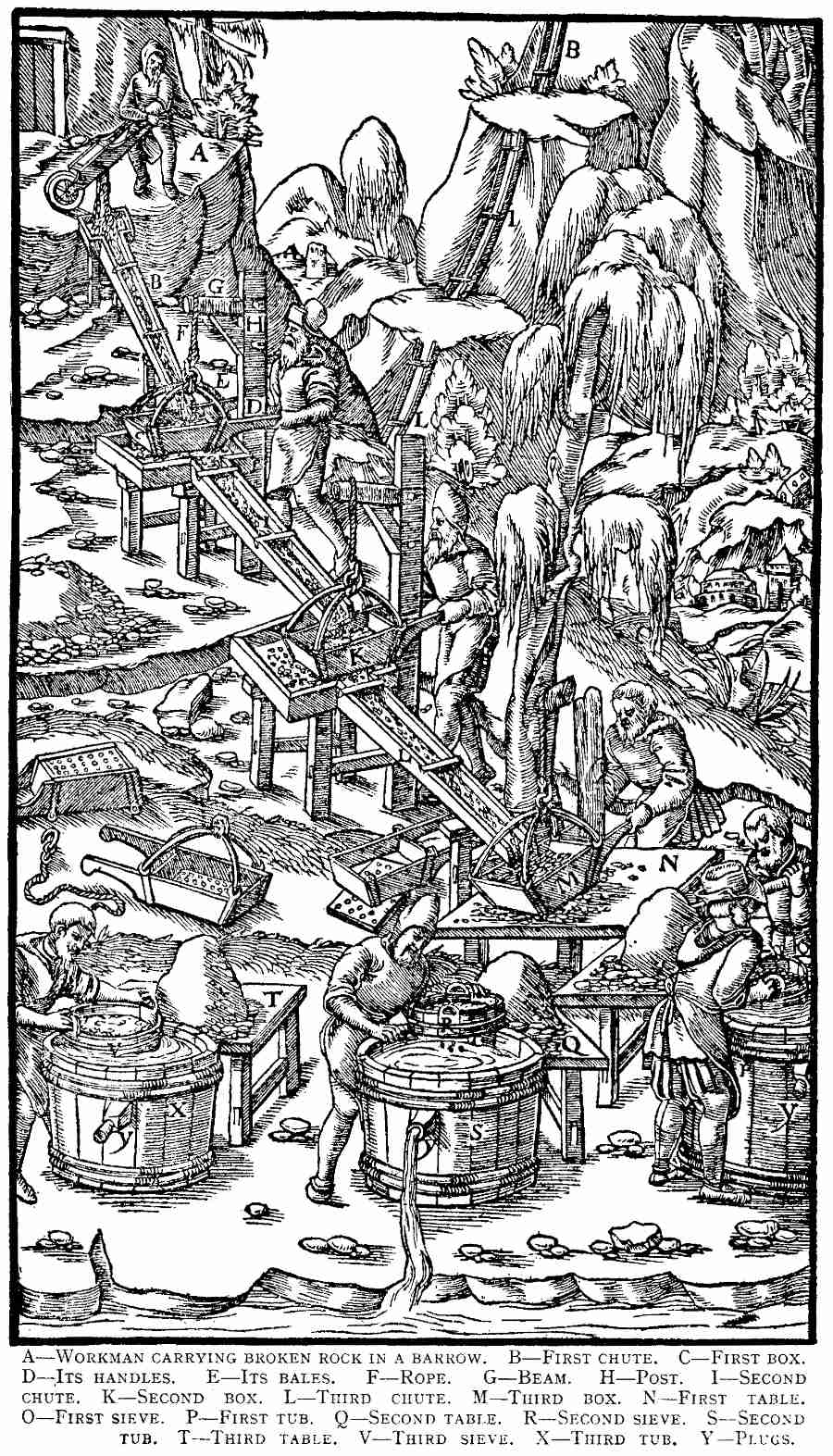 here are three objectives in translation of works of this character: to give a faithful, literal translation of the author's statements; to give these in a manner which will interest the reader; and to preserve, so far as is possible, the style of the original text. The task has been doubly difficult in this work because, in using Latin, the author availed himself of a medium which had ceased to expand a thousand years before his subject had in many particulars come into being; in consequence he was in difficulties with a large number of ideas for which there were no corresponding words in the vocabulary at his command, and instead of adopting into the text his native German terms, he coined several hundred Latin expressions to answer his needs. It is upon this rock that most former attempts at translation have been wrecked. Except for a very small number, we believe we have been able to discover the intended meaning of such expressions from a study of the context, assisted by a very incomplete glossary prepared by the author himself, and by an exhaustive investigation into the literature of these subjects during the sixteenth and seventeenth centuries. That discovery in this particular has been only gradual and obtained after much labour, may be indicated by the fact that the entire text has been re-typewritten three times since the original, and some parts more often; and further, that the printer's proof has been thrice revised. We have found some English equivalent, more or less satisfactory, for practically all such terms, except those of weights, the varieties of veins, and a few minerals. In the matter of weights we have introduced the original Latin, because it is impossible to give true equivalents and avoid the fractions of reduction; and further, as explained in the Appendix on Weights it is impossible to say in many cases what scale the Author had in mind. The English nomenclature to be adopted has given great difficulty, for various reasons; among them, that many methods and processes described have never been practised in English-speaking mining communities, and so had no representatives in our vocabulary, and we considered the introduction of German terms undesirable; other methods and processes have become obsolete and their descriptive terms with them, yet we wished to avoid the introduction of obsolete or unusual English; but of the greatest importance of all has been the necessity to avoid rigorously such modern technical terms as would imply a greater scientific understanding than the period possessed.