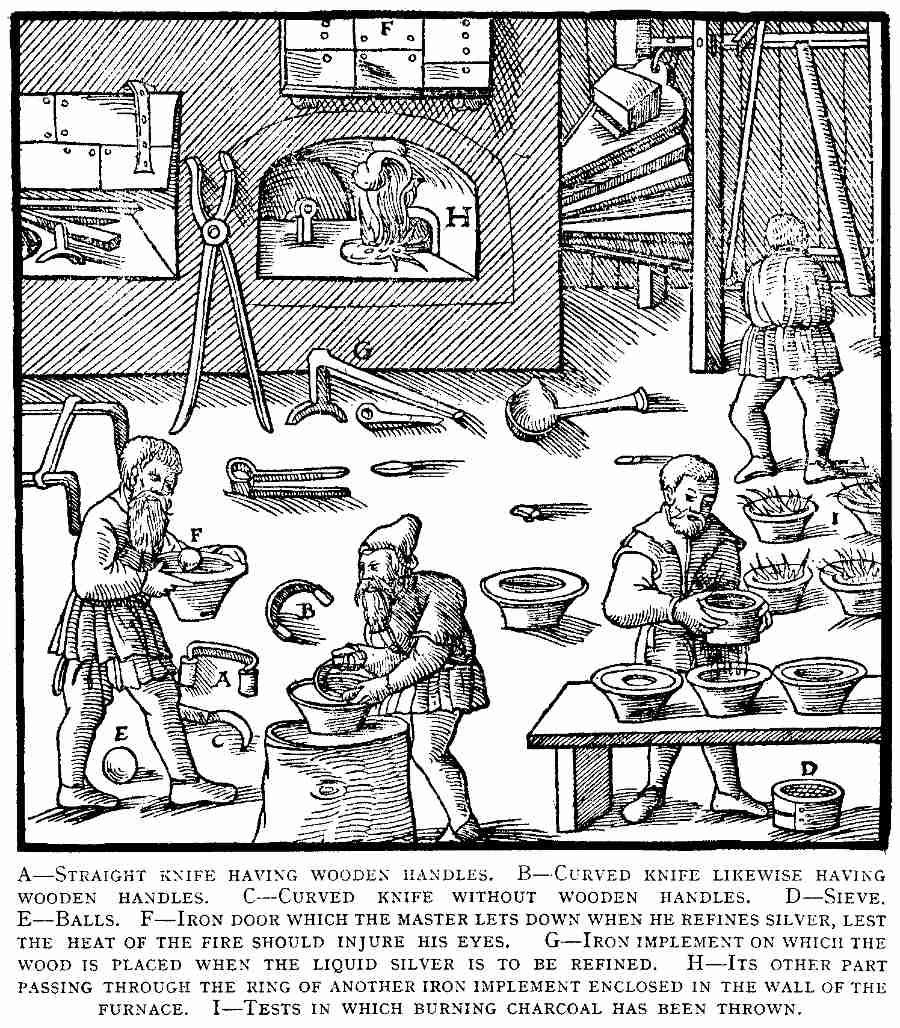 Since no authors have written of this art in its entirety, and since foreign nations and races do not understand our tongue, and, if they did understand it, would be able to learn only a small part of the art through the works of those authors whom we do possess, I have written these twelve books De Re Metallica. Of these, the first book contains the arguments which may be used against this art, and against metals and the mines, and what can be said in their favour. The second book describes the miner, and branches into [Pg xxx]a discourse on the finding of veins. The third book deals with veins and stringers, and seams in the rocks. The fourth book explains the method of delimiting veins, and also describes the functions of the mining officials. The fifth book describes the digging of ore and the surveyor's art. The sixth book describes the miners' tools and machines. The seventh book is on the assaying of ore. The eighth book lays down the rules for the work of roasting, crushing, and washing the ore. The ninth book explains the methods of smelting ores. The tenth book instructs those who are studious of the metallic arts in the work of separating silver from gold, and lead from gold and silver. The eleventh book shows the way of separating silver from copper. The twelfth book gives us rules for manufacturing salt, soda, alum, vitriol, sulphur, bitumen, and glass.