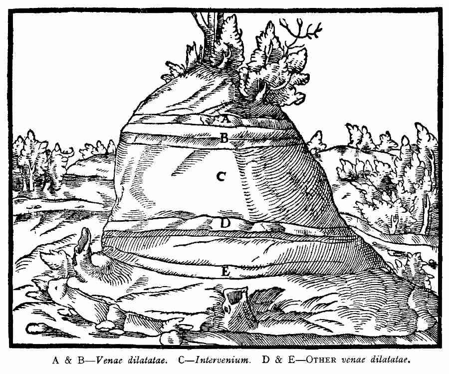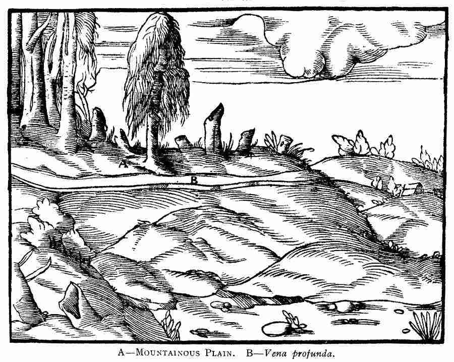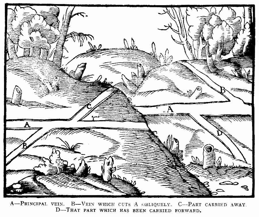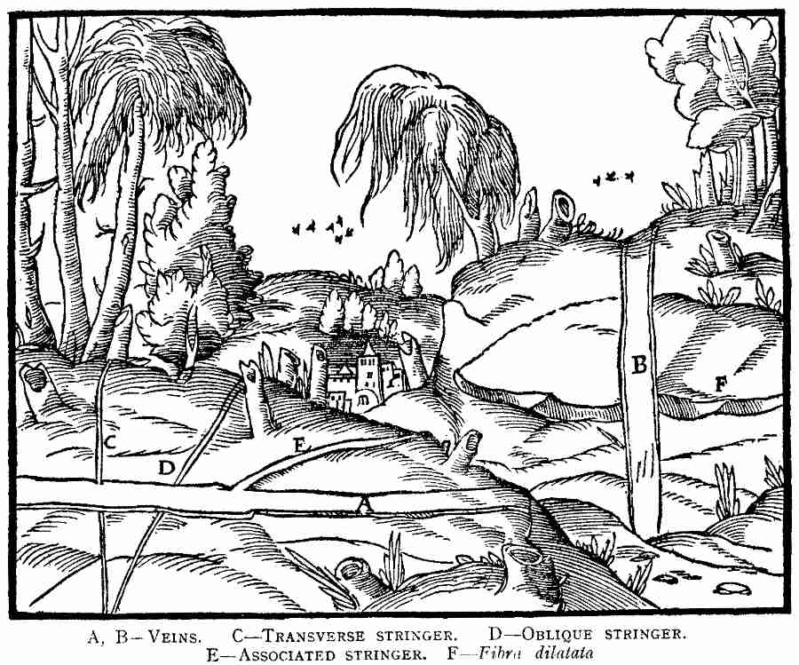 In giving an appreciation of Agricola's views here and throughout the footnotes, we do not wish to convey to the reader that he was in all things free from error and from the spirit of his times, or that his theories, constructed long before the atomic theory, are of the clear-cut order which that basic hypothesis has rendered possible to later scientific speculation in these branches. His statements are sometimes much confused, but we reiterate that [Pg xiii]their clarity is as crystal to mud in comparison with those of his predecessors—and of most of his successors for over two hundred years. As an indication of his grasp of some of the wider aspects of geological phenomena we reproduce, in Appendix A, a passage from De Ortu et Causis, which we believe to be the first adequate declaration of the part played by erosion in mountain sculpture. But of all of Agricola's theoretical views those are of the greatest interest which relate to the origin of ore deposits, for in these matters he had the greatest opportunities of observation and the most experience. We have on page 108 reproduced and discussed his theory at considerable length, but we may repeat here, that in his propositions as to the circulation of ground waters, that ore channels are a subsequent creation to the contained rocks, and that they were filled by deposition from circulating solutions, he enunciated the foundations of our modern theory, and in so doing took a step in advance greater than that of any single subsequent authority. In his contention that ore channels were created by erosion of subterranean waters he was wrong, except for special cases, and it was not until two centuries later that a further step in advance was taken by the recognition by Van Oppel of the part played by fissuring in these phenomena. Nor was it until about the same time that the filling of ore channels in the main by deposition from solutions was generally accepted. While Werner, two hundred and fifty years after Agricola, is generally revered as the inspirer of the modern theory by those whose reading has taken them no farther back, we have no hesitation in asserting that of the propositions of each author, Agricola's were very much more nearly in accord with modern views. Moreover, the main result of the new ideas brought forward by Werner was to stop the march of progress for half a century, instead of speeding it forward as did those of Agricola.