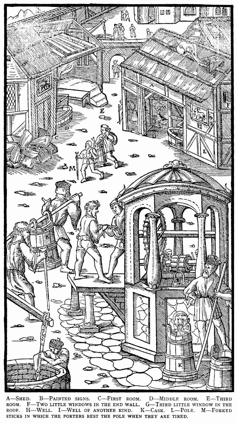 The publication was apparently long delayed by the preparation of the woodcuts; and, according to Mathesius,[18] many sketches for them were prepared by Basilius Wefring. In the preface of De Re Metallica, Agricola does not mention who prepared the sketches, but does say: "I have hired illustrators to delineate their forms, lest descriptions which are conveyed by words should either not be understood by men of our own times, or should cause difficulty to posterity." In 1553 the completed book was sent to Froben for publication, for a letter[19] from Fabricius to Meurer in March, 1553, announces its dispatch to the printer. An interesting letter[20] from the Elector Augustus to Agricola, dated January 18, 1555, reads: "Most learned, dear and faithful subject, whereas you have sent to the Press a Latin book of which the title is said to be De Rebus Metallicis, which has been praised to us and we should like to know the contents, it is our gracious command that you should get the book translated when you have the opportunity into German, and not let it be copied more than once or be printed, but keep it by you and send us a copy. If you should need a writer for this purpose, we will provide one. Thus you will fulfil our gracious behest." The German translation was prepared by Philip Bechius, a Basel University Professor of Medicine and Philosophy. It is a wretched work, by one who knew nothing of the science, and who more especially had no appreciation of the peculiar Latin terms coined by Agricola, most of which [Pg xvi]he rendered literally. It is a sad commentary on his countrymen that no correct German translation exists. The Italian translation is by Michelangelo Florio, and is by him dedicated to Elizabeth, Queen of England. The title page of the first edition is reproduced later on, and the full titles of other editions are given in the Appendix, together with the author's other works. The following are the short titles of the various editions of De Re Metallica, together with the name and place of the publisher:—