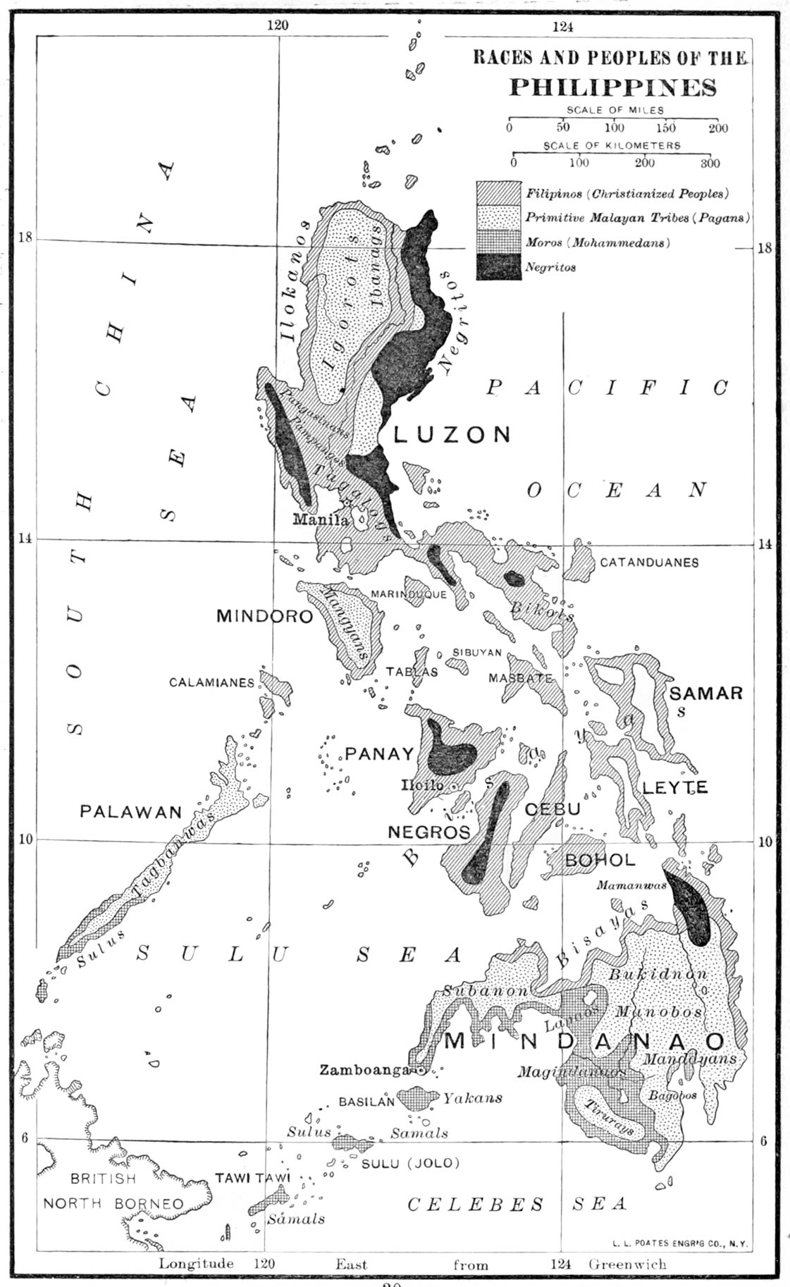 Distribution.—The Negritos have retired from many places where they lived when the Spaniards first arrived, but there are still several thousand in Luzon, especially in the Cordillera Zambales, on the Pacific coast, and in the Sierra Madre range; and in the interior of Panay, Negros, Tablas, and in Surigao of Mindanao.