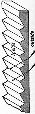 Patent prismatic rolled glass, or “refrax” (fig. 1), consists of an effectual application of the well-known properties of the prism; it absorbs all the light that strikes the window opening, and diffuses it in the most efficient manner possible in the darkest portions of the apartment. It can be fixed in the ordinary way or placed over the existing glass.