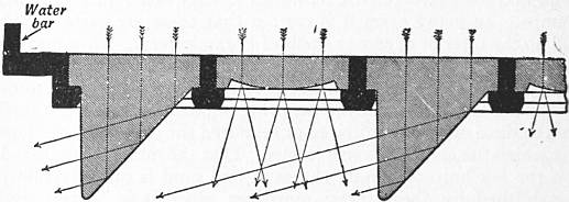 | Fig. 2.—Section through Prism Pavement Light, the direction of light rays being indicated by arrows. |