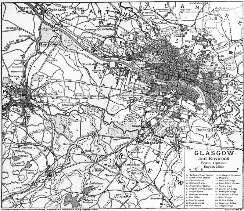 GLENCOE, a glen in Scotland, situated in the north of Argyllshire. Beginning at the north-eastern base of Buchaille Etive, it takes a gentle north-westerly trend for 10 m. to its mouth on Loch Leven, a salt-water arm of Loch Linnhe. On both sides it is shut in by wild and precipitous mountains and its bed is swept by the Coe—Ossian’s “dark Cona,”—which rises in the hills at its eastern end. About half-way down the glen the stream forms the tiny Loch Triochatan. Towards Invercoe the landscape acquires a softer beauty. Here Lord Strathcona, who, in 1894, purchased the heritage of the Macdonalds of Glencoe, built his stately mansion of Mount Royal. The principal mountains on the south side are the various peaks of Buachaille Etive, Stob Dearg (3345 ft.), Bidean nam Bian (3756 ft.) and Meall Mor (2215 ft.), and on the northern side the Pap of Glencoe (2430 ft.), Sgor nam Fiannaidh (3168 ft.) and Meall Dearg (3118 ft.). Points of interest are the Devil’s Staircase, a steep, boulder-strewn “cut” (1754 ft. high) across the hills to Fort William; the Study; the cave of Ossian, where tradition says that he was born, and the Iona cross erected in 1883 by a Macdonald in memory of his clansmen who perished in the massacre of 1692. About 1 m. beyond the head of the glen is Kingshouse, a relic of the old coaching days, when it was customary for tourists to drive from Ballachulish via Tyndrum to Loch Lomond. Now the Glencoe excursion is usually made from Oban—by rail to Achnacloich, steamer up Loch Etive, coach up Glen Etive and down Glencoe and steamer at Ballachulish to Oban. One mile to the west of the Glen lies the village of Ballachulish (pop. 1143). It is celebrated for its slate quarries, which have been worked since 1760. The industry provides employment for 600 men and the annual output averages 30,000 tons. The slate is of excellent quality and is used throughout the United Kingdom. Ballachulish is a station on the Callander and Oban extension line to Fort William (Caledonian railway). The pier and ferry are some 2 m. W. of the village.