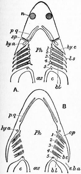 The discoverer of the Ganoidei was succeeded by their explorer Johannes Müller (1801-1858). In his classical memoir Über den Bau und die Grenzen der Ganoiden (Berl., 1846) he showed that the Ganoids differ from all the other osseous fishes, and agree with the Plagiostomes, in the structure of the heart. By this primary character, all heterogeneous elements, as Siluroids, Osteoglossidae, &c., were eliminated from the order as understood by Agassiz. On the other hand, he did not recognize the affinity of Lepidosiren to the Ganoids, but established for it a distinct subclass, Dipnoi, which he placed at the opposite end of the system. By his researches into the anatomy of the lampreys and Amphioxus, their typical distinctness from other cartilaginous fishes was proved; they became the types of two other subclasses, Cyclostomi and Leptocardii.