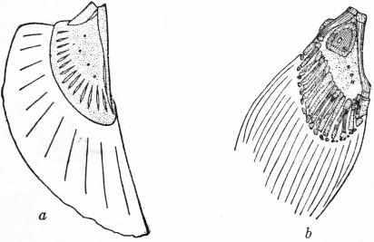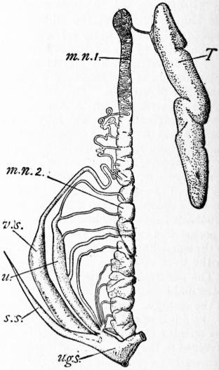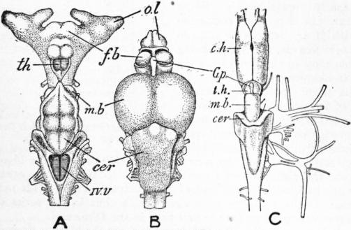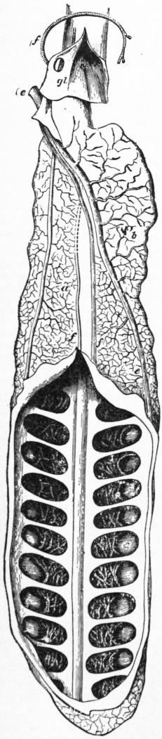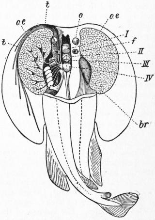 The commencement of the history of ichthyology coincides with that of zoology generally. Aristotle (384-322 B.C.) had a perfect knowledge of the general structure of fishes, which he clearly discriminates both from the aquatic animals with lungs and mammae, i.e. Cetaceans, and from the various groups of aquatic invertebrates. According to him: “the special characteristics of the true fishes consist in the branchiae and fins, the majority having four fins, but those of an elongate form, as the eels, having two only. Some, as the Muraena, lack the fins altogether. The rays swim with their whole body, which is spread out. The branchiae are sometimes furnished with an operculum, sometimes they are without one, as in the cartilaginous fishes.... No fish has hairs or feathers; most are covered with scales, but some have only a rough or a smooth skin. The tongue is hard, often toothed, and sometimes so much adherent that it seems to be wanting. The eyes have no lids, nor are any ears or nostrils visible, for what takes the place of nostrils is a blind cavity; nevertheless they have the senses of tasting, smelling and hearing. All have blood. All scaly fishes are oviparous, but the cartilaginous fishes (with the exception of the sea-devil, which Aristotle places along with them) are viviparous. All have a heart, liver and gall-bladder; but kidneys and urinary bladder are absent. They vary much in the structure of their intestines: for, whilst the mullet has a fleshy stomach like a bird, others have no stomachic dilatation. Pyloric caeca are close to the stomach, and vary in number; there are even some, like the majority of the cartilaginous fishes, which have none whatever. Two bodies are situated along the spine, which have the function of testicles; they open towards the vent, and are much enlarged in the spawning season. The scales become harder with age. Not being provided with lungs, fishes have no voice, but several can emit grunting sounds. They sleep like other animals. In most cases the females exceed the males in size; and in the rays and sharks the male is distinguished by an appendage on each side of the vent.”