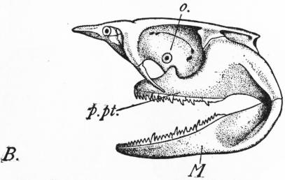 Günther’s classification would have been vastly improved 248 had he made use of a contribution published as early as 1871, but not referred to by him. As not even a passing allusion is made to it in the previous chapter, we must retrace our steps to make good this striking omission. Edward Drinker Cope (1840-1897) was a worker of great originality and relentless energy, who, in the sixties of the last century, inspired by the doctrine of evolution, was one of the first to apply its principles to the classification of vertebrates. Equally versed in recent and fossil zoology, and endowed with a marvellous gift, or “instinct” for perceiving the relationship of animals, he has done a great deal for the advance of our knowledge of mammals, reptiles and fishes. Although often careless in the working out of details and occasionally a little too bold in his deductions, Cope occupies a high rank among the zoologists of the 19th century, and much of his work has stood the test of time.