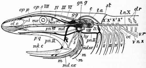 | Sturioniens. | Plagiostomes. | Cyclostomes. |