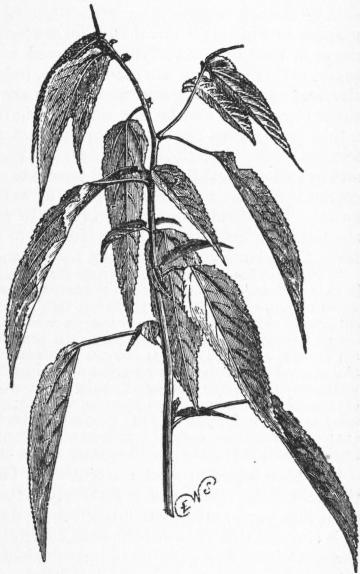 The fibre is obtained from two species of Corchorus (nat. ord. Tiliaceae), C. capsularis and C. olitorius, the products of both being so essentially alike that neither in commerce nor agriculture is any distinction made between them. These and various other species of Corchorus are natives of Bengal, where they have been cultivated from very remote times for economic purposes, although there is reason to believe that the cultivation did not originate in the northern parts of India. The two species cultivated for jute fibre are in all respects very similar to each other, except in their fructification and the relatively greater size attained by C. capsularis. They are annual plants from 5 to 10 ft. high, with a cylindrical stalk as thick as a man’s finger, and hardly branching except near the top. The light-green leaves are from 4 to 5 in. long by 1½ in. broad above the base, and taper upward into a fine point; the edges are serrated; the two lower teeth are drawn out into bristle-like points. The small whitish-yellow flowers are produced in clusters of two or three opposite the leaves.