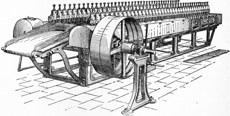 The separated fibre is then made up into bundles ready for sending to one of the jute presses. The jute is carefully sorted into different qualities, and then each lot is subjected to an enormous hydraulic pressure from which it emerges in the shape of the well-known bales, each weighing 400 ℔.
