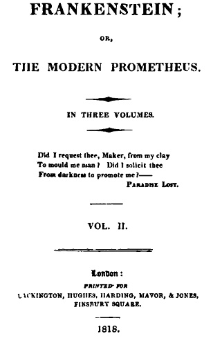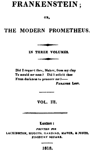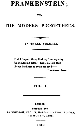 The event on which this fiction is founded has been supposed, by Dr. Darwin, and some of the physiological writers of Germany, as not of impossible occurrence. I shall not be supposed as according the remotest degree of serious faith to such an imagination; yet, in assuming it as the basis of a work of fancy, I have not considered myself as merely weaving a series of supernatural terrors. The event on which the interest of the story depends is exempt from the disadvantages of a mere tale of spectres or enchantment. It was recommended by the novelty of the situations which it developes; and, however impossible as a physical fact, affords a point of view to the imagination for the delineating of human passions more comprehensive and commanding than any which the ordinary relations of existing events can yield.