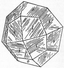 LEUCITE, a rock-forming mineral composed of potassium and aluminium metasilicate KAl(SiO3)2. Crystals have the form of cubic icositetrahedra {211}, but, as first observed by Sir David Brewster in 1821, they are not optically isotropic, and are therefore pseudo-cubic. Goniometric measurements made by G. vom Rath in 1873 led him to refer the crystals to the tetragonal system, the faces o being distinct from those lettered i in the adjoining figure. Optical investigations have since proved the crystals to be still more complex in character, and to consist of several orthorhombic or monoclinic individuals, which are optically biaxial and repeatedly twinned, giving rise to twin-lamellae and to striations on the faces. When the crystals are raised to a temperature of about 500° C. they become optically isotropic, the twin-lamellae and striations disappearing, reappearing, however, when the crystals are again cooled. This pseudo-cubic character of leucite is exactly the same as that of the mineral boracite (q.v.).