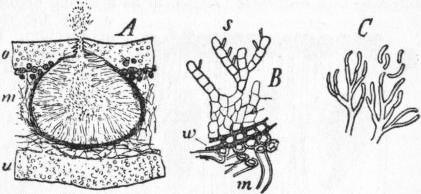 The rocks in which orthoclase (or sanidine) is present in considerable amount are leucite-trachytes, leucite-phonolites and leucitophyres. Of these groups the two former, which are not sharply distinguished from one another by most authors, are common in the neighbourhood of Rome (L. Bracciano, L. Bolsena). They are of trachytic appearance, containing phenocysts of sanidine, leucite, augite and biotite. Sodalite or hauyne may also be present, but nepheline is typically absent. Rocks of this class occur also in the tuffs of the Phlegraean Fields, near Naples. The leucitophyres are rare rocks which have been described from various parts of the volcanic district of the Rhine (Olbrück, Laacher See, &c.) and from Monte Vulture in Italy. They are rich in leucite, but contain also some sanidine and often much nepheline with hauyne or nosean. Their pyroxene is principally aegirine or aegirine augite; some of them are rich in melanite. Microscopic sections of some of these rocks are of great interest on account of their beauty and the variety of felspathoid minerals which they contain. In Brazil leucitophyres have been found which belong to the Carboniferous period.