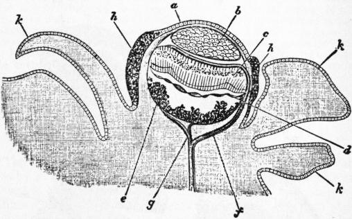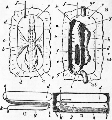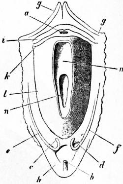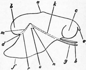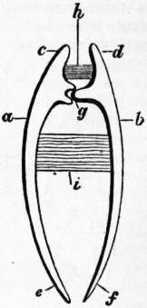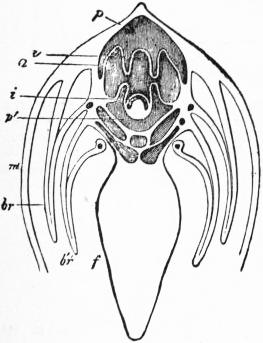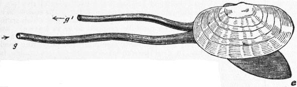 | Fig. 29.—The same animal as fig. 28, with its foot and siphons expanded. Letters as in fig. 28. (From Gegenbaur.) |
