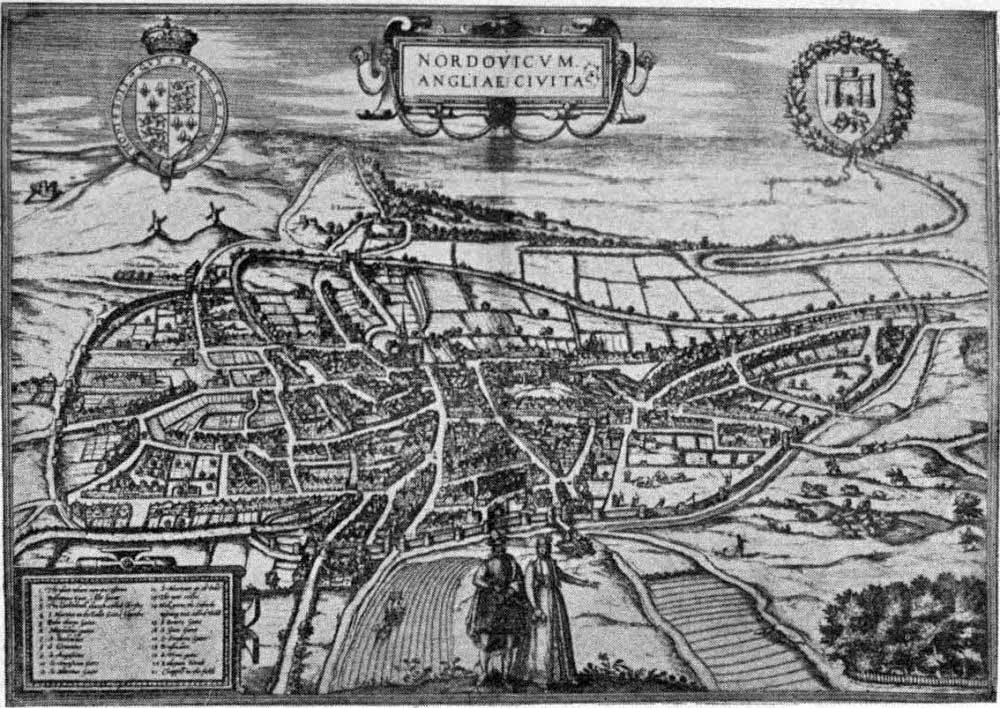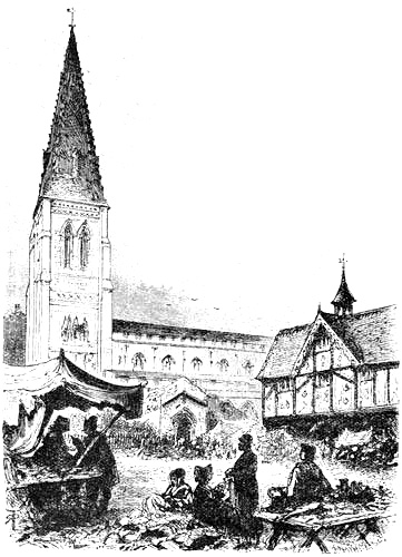 [598] A suburb outside the borough, called the North End, had a Hospital of St. Leonard, and was a separate parish.