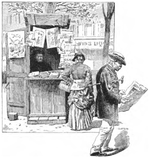 The chiffonnier, however, despised as he is, figures a good deal in literature. A moving drama from the pen of M. Felix Pyat, and a vaudeville by MM. Frédéric de Courcy, Sauvage, and Bayard, have reproduced on the stage his manners and customs. One chiffonnier named Liard passed for a philosopher, and has been treated as such by more than one writer, and by at least one distinguished artist. He had descended from a higher station in life, and had suffered misfortunes. He would come out with Latin sentences on occasion. Scorning the wicker basket, he carried a simple wallet on his shoulder. Having collected his scraps from the gutter, he would pensively study them and draw philosophical reflections therefrom. The chiffonniers, too, sketched by Gavarni are not mindless tramps but profound reasoners.
