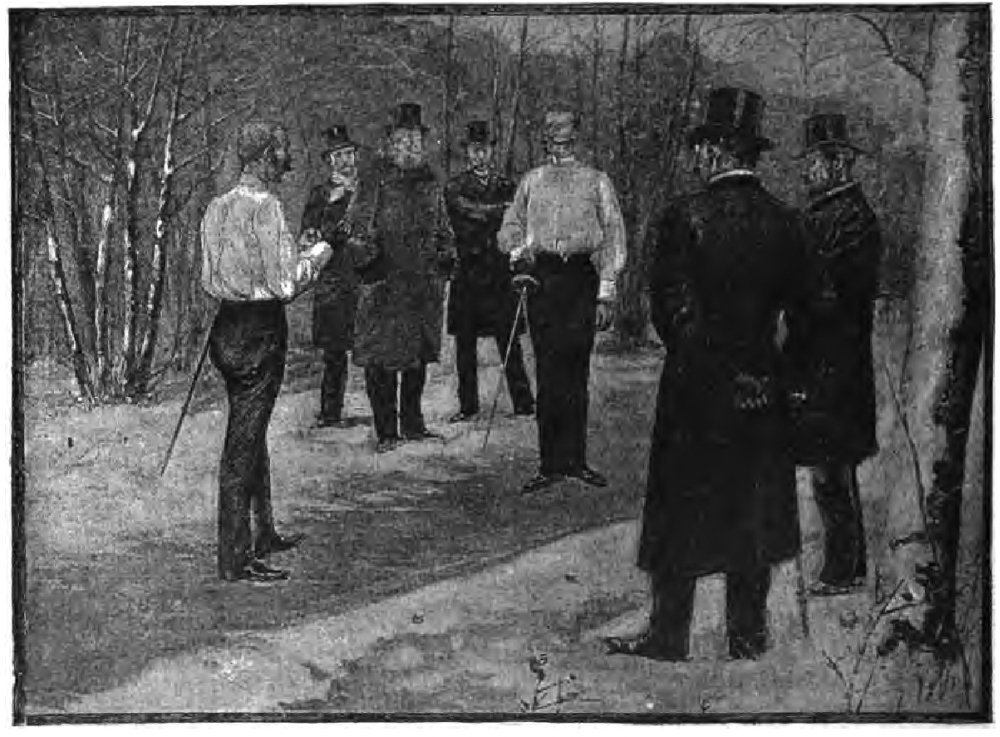 A fastidious duellist, who was ready to fight about any trifle, “to find a quarrel in a straw,” as Hamlet expresses it, had taken umbrage at something said by an entirely inoffensive man. He sent his seconds to wait upon this person and to say that he would fight him at a distance of twenty-five paces. “I agree,” replied the recipient of the challenge; “but since you have regulated the distance, the choice of arms must rest with me—I name the sword.”