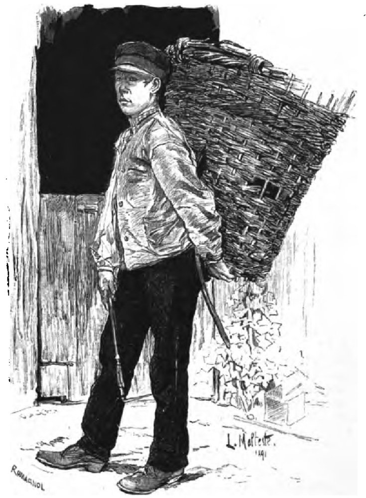PERHAPS the most distinct type of character in Paris is the chiffonnier. Every evening, towards eight o’clock in the summer, and somewhat earlier in the winter, the streets of the capital are scoured by a class of individuals of both sexes, clad in sordid garments, who carry on their back a wicker basket, in their left hand a lantern, and in their right a stick with an iron hook at the end. A provincial or a foreigner might ask with curiosity what part these persons, so strangely armed, play in the social system; but Parisians, to whom they have long been familiar, and to whom they are indeed historical, know them as the chiffonniers or rag-pickers. An observer, if he follows one of these wretched adventurers, will see him stop at every dust-heap lying along the thoroughfares, previously to their being cleared away by the city scavengers. He rummages in these heaps, turning their contents over and over, and with the aid of his stick picks up and thrusts into his basket whatever objects will find a sale in his peculiar market. Not content with collecting those rags or chiffons from which he seems to have derived his name, he gathers up old papers, corks, bones, nails, broken glass, human hair, and even cats and dogs, which, contrary to the regulations, have been flung dead into the streets. Some of the more enterprising of these explorers will, in defiance of the law, strip the walls or hoardings of their placards. Occasionally it happens that the rag-picker finds objects of value, silver spoons, jewels, or even bank-notes, which have accidentally got swept into the rubbish. In these cases he is obliged, under the severest penalties, to surrender the treasure-trove to the nearest commissary of police. The old papers and rags are employed in the manufacture of paper and cardboard; the glass is melted again; the bones are turned into animal black; the nails are thrown in with old iron; the cats and dogs are stripped of their skins, and the hair reappears—according to a vivacious, and, let us hope, imaginative writer—upon the heads of the fashionable, in waving tresses or other elegant forms of coiffure. But this human ferret, who may be seen every night at work in the corners of the Paris streets, is only the emissary of a more exalted chiffonnier: the lord of the iron crook, who does not quit his palace, but simply purchases the nightly harvests, which he afterwards “tests,” sorts, and classifies, so as to sell {361} again to the various trades which may have a use for such merchandise. Everything picked up serves some commercial purpose; each of those vile objects unearthed from the dust-heaps is a chrysalis to which industrial science will give an elegant form and transparent wings. The prices paid by manufacturers of paper and cardboard, who are the chief buyers of rag-pickers’ produce, vary from something under a sou per pound for dirty old rags and papers, to five sous for rags of the very best description.