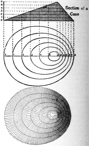 Delineation of the Ground.—The mole-hills and serrated ridges of medieval maps were still in almost general use at the close of the 18th century, and are occasionally met with at the present day, being cheaply produced, readily understood by the unlearned, and in reality preferable to the uncouth and misleading hatchings still to be seen on many maps. Far superior are those scenographic representations which enable a person consulting the map to identify prominent landmarks, such as the Pic du Midi, which rises like a pillar to the south of Pau, but is not readily discovered upon an ordinary map. This advantage is still fully recognized, for such views of distant hills are still commonly given on the margin of marine charts for the assistance of navigators; military surveyors are encouraged to introduce sketches of prominent landmarks upon their reconnaissance plans, and the general public is enabled to consult “Picturesque Relief Maps”—such as F. W. Delkeskamp’s Switzerland (1830) or his Panorama of the Rhine. Delineations such as these do not, however, satisfy scientific requirements. All objects on a map are required to be shown as projected horizontally upon a plane. This principle must naturally be adhered to when delineating the features of the ground. This was recognized by J. Picard and other members of the Academy of Science whom Colbert, in 1668, directed to prepare a new map of France, for on David Vivier’s map of the environs of Paris (1674, scale 1 : 86,400) very crude hachures bounding the rivers have been substituted for the scenographic hills of older maps. Little progress in the delineation of the ground, however, was made until towards the close of the 18th century, when horizontal contours and hachures regulated according to the angle of inclination of all slopes, were adopted. These contours intersect the ground at a given distance above or below the level of the sea, and thus bound a series of horizontal planes (see fig. 1). Contours of this kind were first utilized by M. S. Cruquius in his chart of the Merwede (1728); Philip Buache (1737) introduced such contours or isobaths (Gr. ἶσος, equal; βαθύς, deep) upon his chart of the Channel, and intended to introduce similar contours or isohypses (ὔψος, height) for a representation of the land. Dupain-Triel, acting upon a suggestion of his friend M. Ducarla, published his La France considérée dans les différentes hauteurs de ses plaines (1791), upon which equidistant contours at intervals of 16 toises found a place. The scientific value of these contoured maps is fully recognized. They not only indicate the height of the land, but also enable us to compute the declivity of the mountain slopes; and if minor features of ground lying between two contours—such as ravines, as also rocky precipices and glaciers—are indicated, as is done on the Siegfried atlas of Switzerland, they fully meet the requirements of the scientific man, the engineer and the mountain-climber. At the same time it cannot be denied that these maps, unless the contours are inserted at short intervals, lack graphic expression. Two methods are employed to attain this: the first distinguishes the strata or layers by colours; the second indicates the varying slopes by shades or hachures. The first of these methods yields a hypsographical, or—if the sea-bottom be included, in which case all contours are referred to a common datum line—a bathy hypsographical map. Carl Ritter, in 1806, employed graduated tints, increasing in lightness on proceeding from the lowlands to the highlands; while General F. von Hauslab, director of the Austrian Surveys, in 1842, advised that the darkest tints should be allotted to the highlands, so that they might not obscure details in the densely peopled plains. The desired effect may be produced by a graduation of the same colour, or by a polychromatic scale—such as white, pale red, pale brown, various shades of green, violet and purple, in ascending order. C. von Sonklar, in his map of the Hohe Tauern (1 : 144,000; 1864) coloured plains and valleys green; mountain slopes in five shades of brown; glaciers blue or white. E. G. Ravenstein’s map of Ben Nevis (1887) first employed the colours of the spectrum, viz. green to brown, in ascending order for the land; blue, indigo and violet for the sea, increasing in intensity with the height or the depth. At first cartographers chose their colours rather arbitrarily. Thus Horsell, who was the first to introduce tints 631 on his map of Sweden and Norway (1 : 600,000; 1835), coloured the lowlands up to 300 ft. in green, succeeded by red, yellow and white for the higher ground; while A. Papen, on his hypsographical map of Central Europe (1857) introduced a perplexing range of colours. At the present time compilers of strata maps generally limit themselves to two or three colours, in various shades, with green for the lowlands, brown for the hills and blue for the sea. On the international map of the world, planned by Professor A. Penck on a scale of 1 : 1,000,000, which has been undertaken by the leading governments of the world, the ground is shown by contours at intervals of 100 metres (to be increased to 200 and 500 metres in mountainous districts); the strata are in graded tints, viz. blue for the sea, green for lowlands up to 300 metres, yellow between 300 and 500 metres, brown up to 2000 metres, and reddish tints beyond that height.