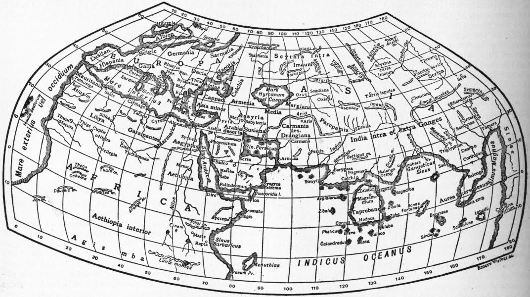 The period between Eratosthenes and Marinus of Tyre was one of great political importance. Carthage had been destroyed (146 B.C.), Julius Caesar had carried on his campaign in Gaul (58-51 B.C.), Egypt had been occupied (30 B.C.), Britannia conquered (A.D. 41-79), and the Roman empire had attained its greatest extent and power under the emperor Trajan (A.D. 98-117). But although military operations added to our knowledge of the world, scientific cartography was utterly neglected.