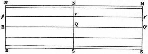 In cases where the draughtsman has omitted to indicate the scale we can ascertain it by dividing the actual length of a meridian degree by the length of a degree measure upon the map. Thus a degree between 50° and 51° measures 111,226,000 mm.; on the map it is represented by 111 mm. Hence the scale is 1 : 1,000,000 approximately.