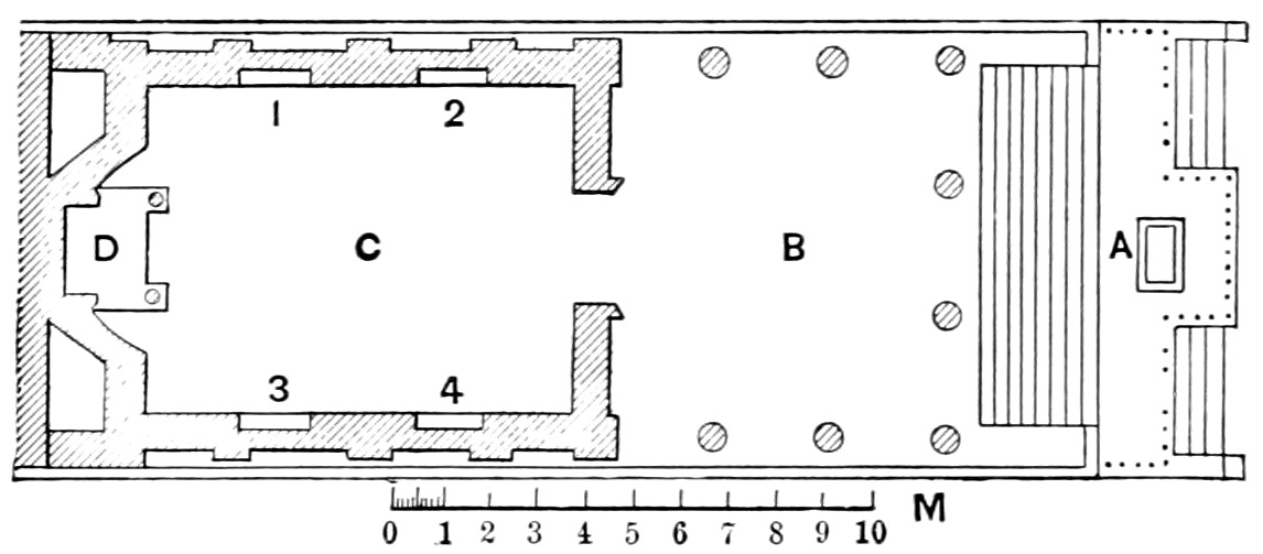 [2] It seems strange that traces of other buildings of the same period have not been discovered; but, on the other hand, it is far from probable that the temple was first erected, and that the city afterward grew up around it, for in that case the temple must have been placed further west, on the highest point of the elevation, overlooking the sea.