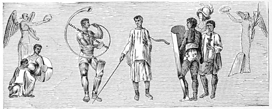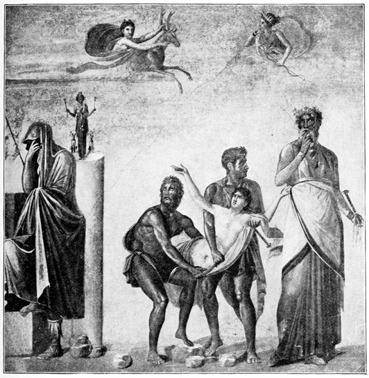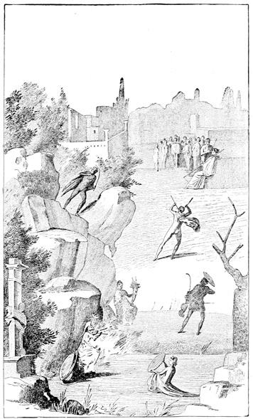 [5] "Virgil's words, 'Then were all silent,' look strangely in a half-finished scrawl from a wall of Pompeii's hushed and solitary homes."—Myers, Essays Classical (London, 1897), p. 149.
