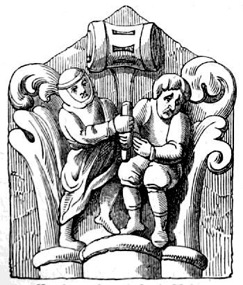 A tendency to burlesque and caricature appears, indeed, to be a feeling deeply implanted in human nature, and it is one of the earliest talents displayed by people in a rude state of society. An appreciation of, and sensitiveness to, ridicule, and a love of that which is humorous, are found even among savages, and enter largely into their relations with their fellow men. When, before people cultivated either literature or art, the chieftain sat in his rude hall surrounded by his warriors, they amused themselves by turning their enemies and opponents into mockery, by laughing at their weaknesses, joking on their defects, whether physical or mental, and giving them nicknames in accordance therewith,—in fact, caricaturing them in words, or by telling stories which were calculated to excite laughter. When the agricultural slaves (for the tillers of the land were then slaves) were indulged with a day of relief from their labours, they spent it in unrestrained mirth. And when these same people began to erect permanent buildings, and to ornament them, the favourite subjects of their ornamentation were such as presented ludicrous ideas. The warrior, too, who caricatured his enemy in his speeches over the festive board, soon sought to give a more permanent form to his ridicule, which he endeavoured to do by rude delineations on the bare rock, or on any other convenient surface which presented itself to his hand. Thus originated caricature and the grotesque in art. In fact, art itself, in its earliest forms, is caricature; for it is only by that exaggeration of features which belongs to caricature, that unskilful draughtsmen could make themselves understood.