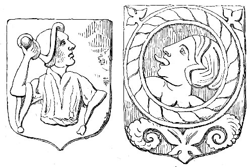 [69] For the drawings of these interesting carvings from the Cornish churches, I am indebted to the kindness of Mr. J. T. Blight, the author of an extremely pleasing and useful guide to the beauties of a well-known district of Cornwall, entitled “A Week at the Land’s End.”