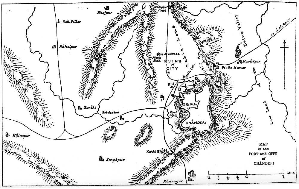 934 AH.—Sep. 27th 1527 to Sep. 15th 1528 AD.—Bābur visits Kūl and Saṃbal and returns to Āgra—has fever and ague intermittently for 20-25 days—goes out to welcome kinswomen—a large mortar bursts with fatal result—he visits Sīkrī—starts for Holy War against Chandīrī—sends troops against Bāyazīd Farmūlī—incidents of the march to Chandīrī—account of Kachwa—account of Chandīrī—its siege—Meantime bad news arrives from the East—Bābur keeping this quiet, accomplishes the work in hand—Chandīrī taken—change of plans enforced by defeat in the East—return northwards—Further losses in the East—Rebels take post to dispute Bābur’s passage of the Ganges—he orders a pontoon-bridge—his artillery is used with effect, the bridge finished and crossed and the Afghāns worsted—Tukhta-būghā Chaghatāī arrives from Kāshgar—Bābur visits Lakhnau—suffers from ear-ache—reinforces Chīn-tīmūr against the rebels—Chīn-tīmūr gets the better of Bāyazīd Farmūlī—Bābur settles the affairs of Aūd (Oude) and plans to hunt near |