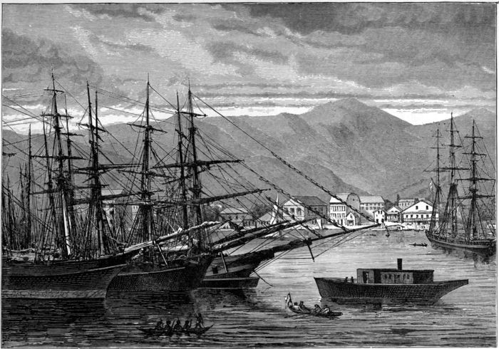 We all know what the “Grand Tour” meant a few generations ago, and how without it no gentleman’s education was considered complete. Now-a-days the journey can be made by almost any one who can command thirty or forty pounds, and the only really grand tour left is that around [pg 2]the world. M. Verne tells us—inferentially, at all events—that it can be made in eighty days, while Puck, as we know, speaks of putting a “girdle round the earth in forty minutes.” But this statement of the popular French author, like many others put forth in his graphic and picturesque works, must be taken cum grano salis. It could be, undoubtedly, but it is very questionable whether any one has yet accomplished the feat. Could one ensure the absolute “connection” as it is technically termed, of all the steamship lines which would have to be employed it might be done; or better, one vessel with grand steaming and sailing qualities might perform the “Voyage Round the World” in the given time. But M. Jules Verne, it will be remembered, paints his hero as landing at various points, and as performing acts of bravery and chivalry en route, such as the episode of rescuing a Hindoo widow from the Suttee; finding time to lounge and drink in San Francisco “saloons,” and being attacked by Indians, who would wreck the overland train; and still, with all delays, he is able to reach London in time to win his wager. The very idea of describing a journey round the world as an act of eccentricity is peculiarly French. The Englishman who can afford to make it is especially envied by his friends, and not considered mildly mad. We have before us a list of books of travel, all published within the last few years, and in circulation at the ordinary libraries. Thirteen of these works describe voyages round the world, and they are mostly the productions of amateur rather than of professional writers. So easy, indeed, is the trip now-a-days, that two of these records are modestly and deprecatingly described as “Rambles,” while one of the best of them is the work of a clever and enthusiastic lady,1 whose excellent husband, in and out of Parliament, has earnestly and persistently studied “poor Jack’s” best interests. This lady is evidently no fresh-water sailor, and would put to shame the land-lubber described in a very old song:—