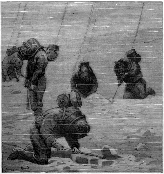 | Scientific Diving—General Principles—William Phipps and the Treasure Ship—Founder of the House of Mulgrave—Halley’s Wooden Diving-Bell and Air Barrels—Smeaton’s Improvements—Spalding’s Death—Operations at Plymouth Breakwater—The Diver’s Life—“Lower away!”—The Diving-Belle and her Letter from Below—Operations at the Bottom—Brunel and the Thames Tunnel—The Diving Dress—Suffocation—Remarkable Case of Salvage—The “Submarine Hydrostat”—John Gann of Whitstable—Dollar Row—Various Anecdotes—Combat at the Bottom of the Sea—A Mermaid Story—Run down by the Queen of Scotland | 79 |