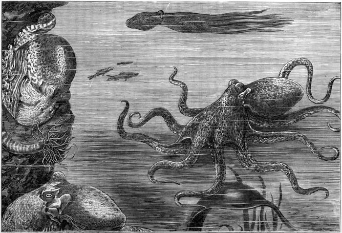 | The Univalves—A Higher Scale of Animal—The Gasteropoda—Limpets—Used for Basins in the Straits of Magellan—Spiral and Turret Shells—The Cowries—The Mitre Shells—The Purpuras—Tyrian Purple—The Whelk—The Marine Trumpet—The Winged-feet Molluscs—The Cephalopodous Molluscs—The Nautilus—Relic of a Noble Family—The Pearly Nautilus and its Uses—The Cuttle-fish—Michelet’s Comments—Hugo’s Actual Experiences—Gilliatt and his Combat—A Grand Description—The Devil-Fish—The Cuttle-Fish of Science—A Brute with Three Hearts—Actual Examples contrasted with the Kraken—A Monster nearly Captured—Indian Ink and Sepia—The Argonauta—The Paper Nautilus | 139 |