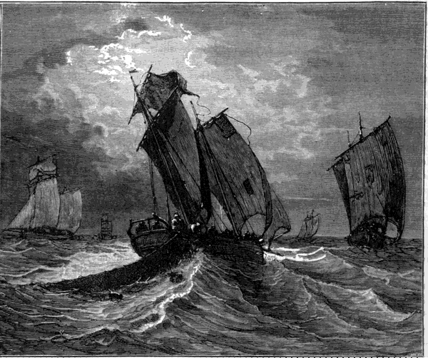 Then there is the pleasure of discovering “a sail in sight,” and of watching it grow larger by degrees as the vessels approach each other. The “look out” is kept by some passengers almost as persistently as by the sailors detailed for the purpose. Perhaps, again, the captain or officers have let out the fact that they should pass one of their own or some rival company’s [pg 10]vessel that day. How many eyes are strained after that first mere thread of smoke on the horizon! What ringing cheers as the two great steamships near each other! What an amount of anxious enthusiasm when it is known that a boat is coming off from the other vessel, and what feverish excitement to learn all the news! They may have been seven or eight days without any, and in that time what may not have occurred in the history of nations!