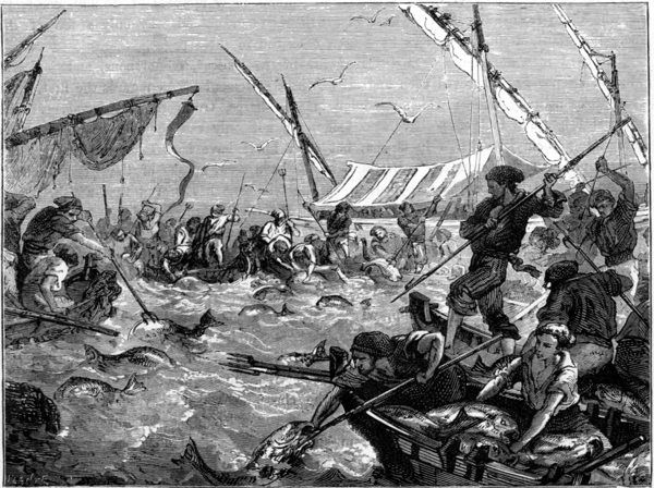 | The Clupedæ—The Herring—Its Cabalistic Marks—A Warning to Royalty—The “Great Fishery”—Modes of Fishing—A Night with the Wick Fishermen—Suicidal Fish—The Value of Deep-sea Fisheries—Report of the Commissioners—Fecundity of the Herring—No fear of Fish Famine—The Shad—The Sprat—The Cornish Pilchard Fisheries—The “Huer”—Raising the “Tuck”—A Grand Harvest—Gigantic Holibut—Newfoundland Cod Fisheries—Brutalities of Tunny Fishing—The Mackerel—Its Courage, and Love of Man—Garum Sauce—The formidable Sword-fish—Fishing by Torchlight—Sword through a Ship’s side—General Remarks on Fish—Fish Life—Conversation—Musical Fish—Pleasures and Excitements—Do Fish sleep? | 168 |