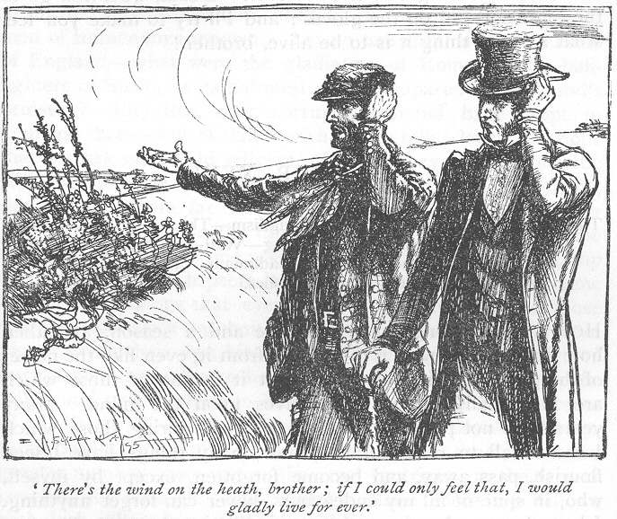 And yet I suppose it would be considered ridiculous in these fine days to call Borrow a great artist. His fascination, his hold upon his reader, is not the fascination or the hold of the lords of human smiles and tears. They enthrall us; Borrow only bewitches. Isopel Berners, hastily limned though she be, need fear comparison with no damsel that ever lent sweetness to the stage, relish to rhyme, or life to novel. She can hold up her head and take her own part amidst all the Rosalinds, Beatrices, and Lucys that genius has created and memory can muster. But how she came into existence puzzles us not a little. Was she summoned out of nothingness by the creative fancy of Lavengro, or did he really first set eyes upon her in the dingle whither she came with the Flaming Tinman, whose look Lavengro did not like at all? Reality and romance, though Borrow made them wear double harness, are not meant to be driven together. It is hard to weep aright over Isopel Berners. The reader is tortured by a sense of duty towards her. This distraction prevents our giving ourselves away to Borrow. Perhaps after all he did meet the tall girl in the dingle, in which case he was a fool for all his pains, losing a gift the gods could not restore.