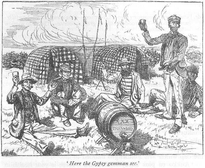‘Stop a moment,’ interposed the postilion, ‘I have one more word to say:—and when you are surrounded by your comforts, keeping your nice little barouche and pair, your coachman and livery servant, and visited by all the carriage people in the neighbourhood—to say nothing of the time when you come to the family estates on the death of the old people—I shouldn’t wonder if now and then you look back with longing and regret to the days when you lived in the damp dripping dingle, had no better equipage than a pony or donkey cart, and saw no better company than a tramper or gypsy, except once, when a poor postilion was glad to seat himself at your charcoal fire.’