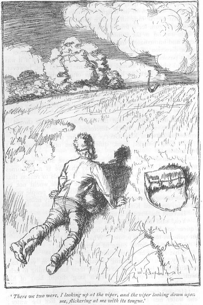 It happened that my brother and myself were playing one evening in a sandy lane, in the neighbourhood of this Pett camp; our mother was at a slight distance. All of a sudden, a bright yellow, and, to my infantine eye, beautiful and glorious, object made its appearance at the top of the bank from between the thick quickset, and, gliding down, began to move across the lane to the other side, like a line of golden light. Uttering a cry of pleasure, I sprang forward, and seized it nearly by the middle. A strange sensation of numbing coldness seemed to pervade my whole arm, which surprised me the more, as the object to the eye appeared so warm and sunlike. I did not drop it, however, but, holding it up, looked at it intently, as its head dangled about a foot from my hand. It made no resistance; I felt not even the slightest struggle; but now my brother began to scream and shriek like one possessed. ‘O mother, mother!’ said he, ‘the viper!—my brother has a viper in his hand!’ He then, like one frantic, made an effort to snatch the creature away from me. The viper now hissed amain, and raised its head, in which were eyes like hot coals, menacing, not myself, but my brother. I dropped my captive, for I saw my mother running towards me; and the reptile, after standing for a moment nearly erect, and still hissing furiously, made off, and disappeared. The whole scene is now before me, as vividly as if it occurred yesterday—the gorgeous viper, my poor dear frantic brother, my agitated parent, and a frightened hen clucking under the bushes—and yet I was not three years old.