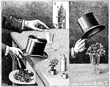 | Trick with an Egg and a Handkerchief—The Cone of Flowers—The Magic Rosebush—“Magic Flowers”—The “Birth of Flowers”—Tricks with a Hat—A Cake Baked in a Hat—The Egg and Hat Trick—Multiplication of Coins—Magic Coins—The Dissolving Coin—The Spirit Slates—Second Sight—Magic Cabinets—The Traveling Bottle and Glass—Disappearance of an Apple and a Ninepin—A Goblet of Ink Converted into an Aquarium—The Invisible Journey of a Glass of Wine—The Wine Changed to Water—The Animated Mouse—The Sand Frame Trick—Houdin’s Magic Ball, | 105 |