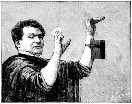 Page 51, paragraph “In placing his hands ...”: this paragraph was copied verbatim from the original work. Apparently something went wrong during the book production process: some lines seem to be misplaced or otherwise garbled. A very similar (if not the same) trick is better explained in Harry Houdini: Magical Rope Ties and Escapes. London: Will Goldstone, 1921.